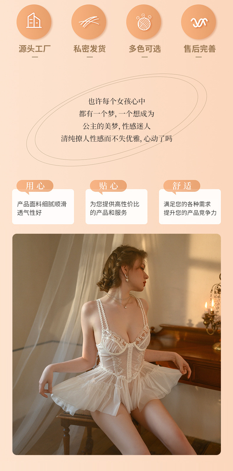 Французское белье для женщин с маленькой грудью, чисто-элегантная ночная сорочка на тонких бретельках, ультратонкая сетка, белый и черный цвета 8189