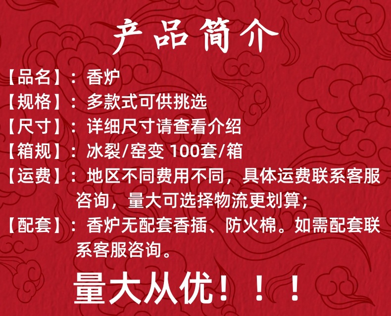 [Изменяем печи] Красный; [Изменяемая печь] Синий; [Изменение печи] Белый; [Изменяемая печь] Желтый; [Изменяемая печь] Зеленый; [Белый фарфор] Сяо Цзин; [Ледяной трещина] Изумруд; [Ледяная трещина] Небесно-голубой; [Ледяной трещина] королевский синий; [Ледяной трещина] Алмазный белый; [Ледяной трещина] Розовый розовый порошок; [Сплав] Руйи курильница; [Желтый золотой] Пожарный хлопок для благовоний Longfeng; [Зеленый лес] Пожарный хлопок для благовоний дракона и феникса; [Бронзовый] Пожарный хлопок для благовоний Longfeng; [Желтый золотой] Огнестойкий хлопок для курильницы; [Бронзовый] Огнестойкий хлопок для курильницы; [Бронзовый] Огнестойкий хлопок для курильницы; [Женский кот белый] Удачный кот благовоний огнеупорный хлопок; [Мужской кот белый] Пожарная кошачья курильница; [Мужской кот черный] Удачный кот благовоний огнеупорный хлопок; [Желтый золото] Yuanbao благовония пожарный хлопок; [Ретро зеленый] Yuanbao благовония пожарный хлопок; [Ретро серебро] Yuanbao благовония пожарный хлопок; [Ретро зеленый] Baifu курильница огнеупорный хлопок; [Винтажная медь] Baifu курильница огнеупорный хлопок; [Желтый золото] Богатая курильница огнеупорный хлопок; [Бронзовый] Богатый благовония пожарный хлопок; [Золото] Майтрейя курильница огнеупорный хлопок; [Желтый золотой] Феникс ладан; [Мэй Цин] Большая курильница для комаров; [Розовый голубой] Большая курильница для комаров