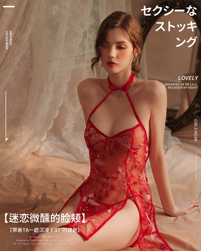 Сексуальное нижнее белье Ретро Cheongsam Горячая Сексуальная кровать Осторожно костюм Полночь Очаровательная промежность Свободное спальное платье