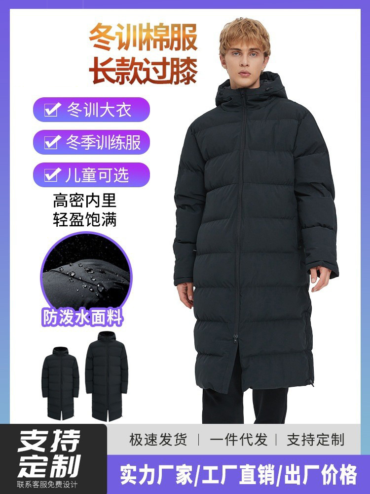 Трансграничные длинные коленные спортивные пуховые хлопчатобумажные костюмы мужские толстые зимние тренировки спортивные спортивные спортивные студенты-испытательный клуб танцевальные пальто