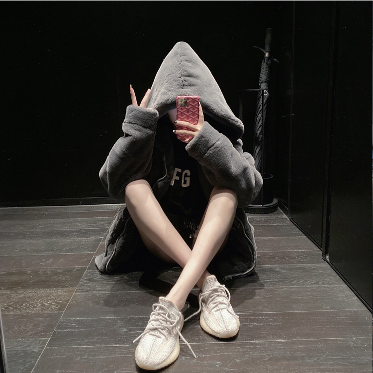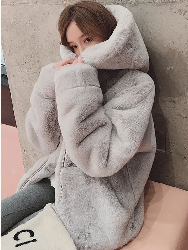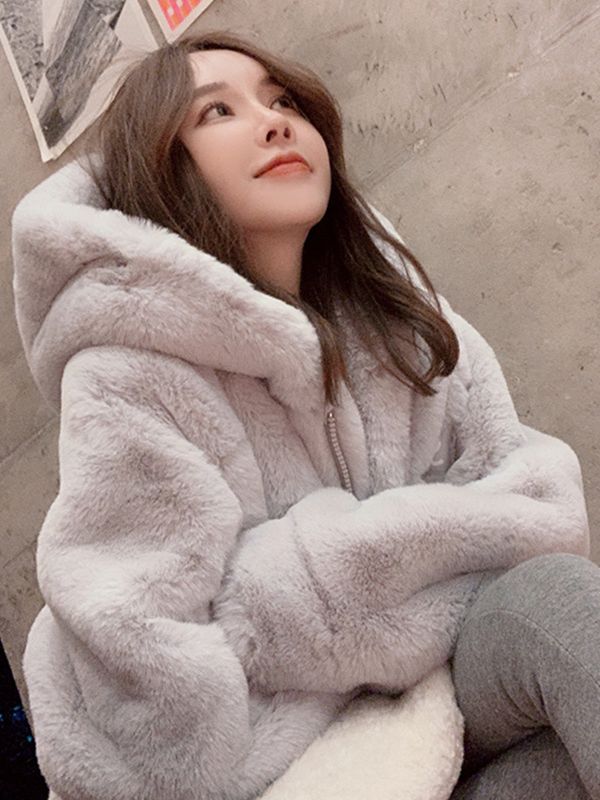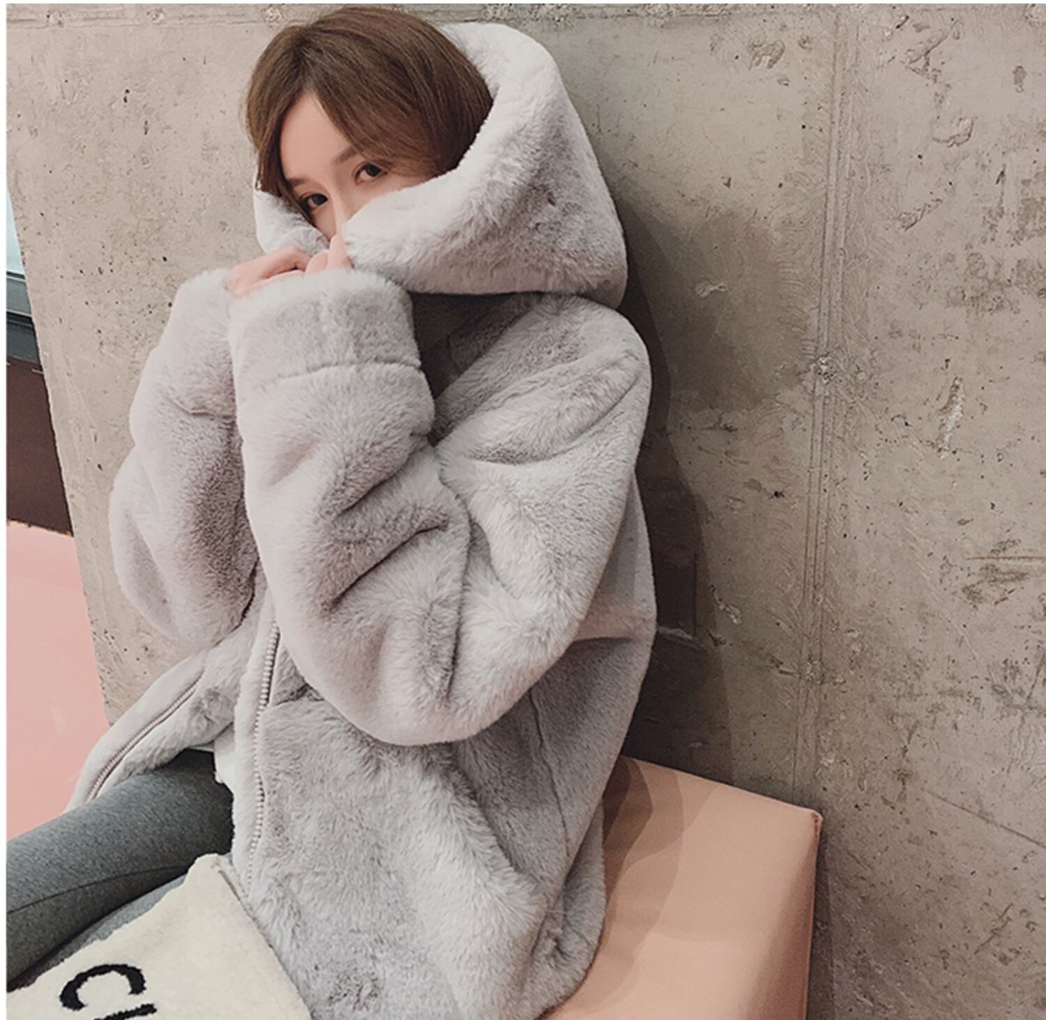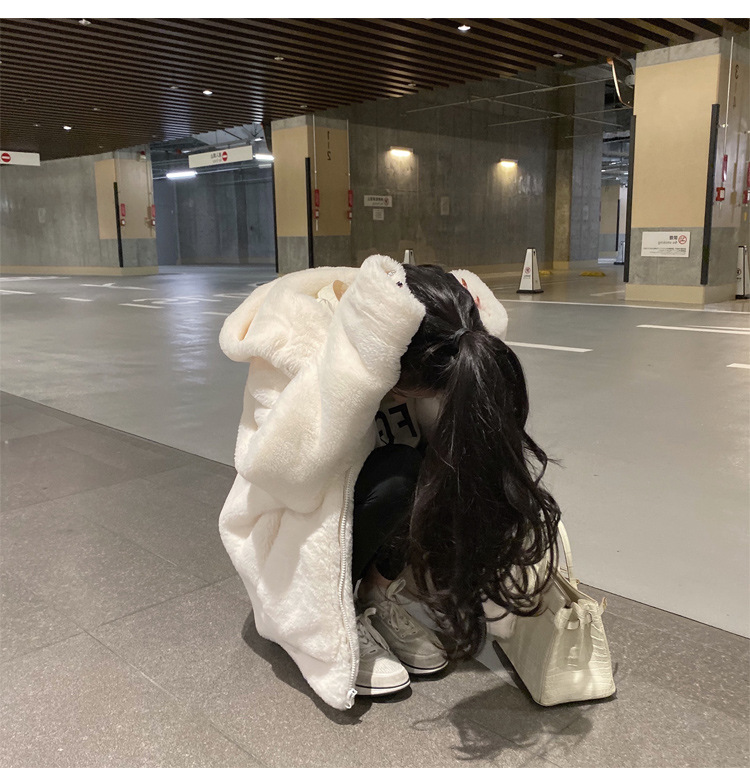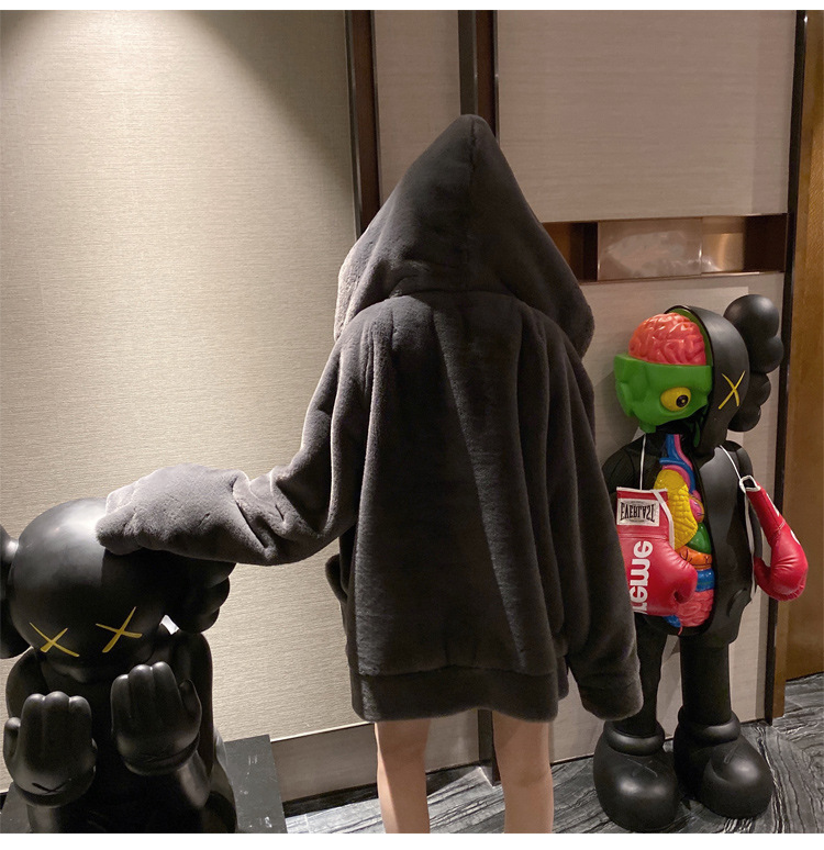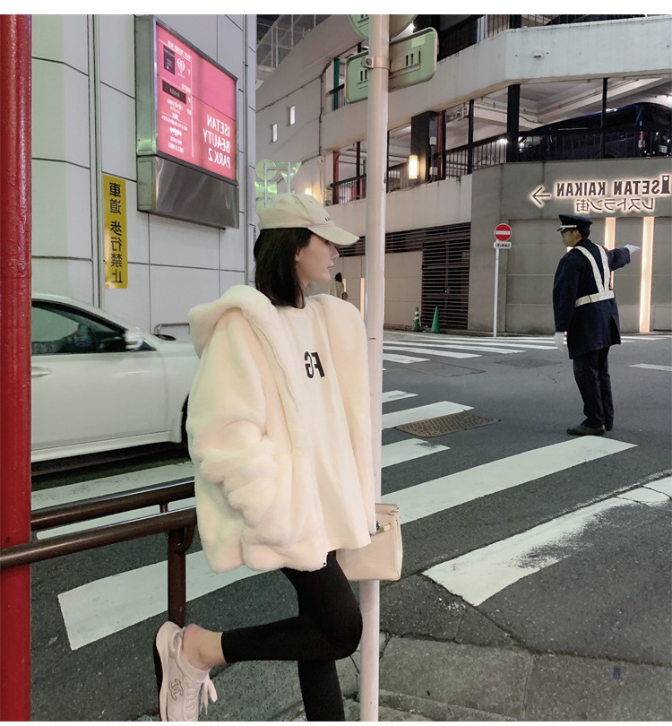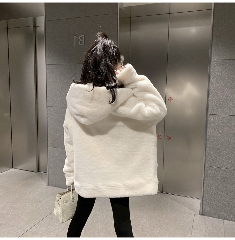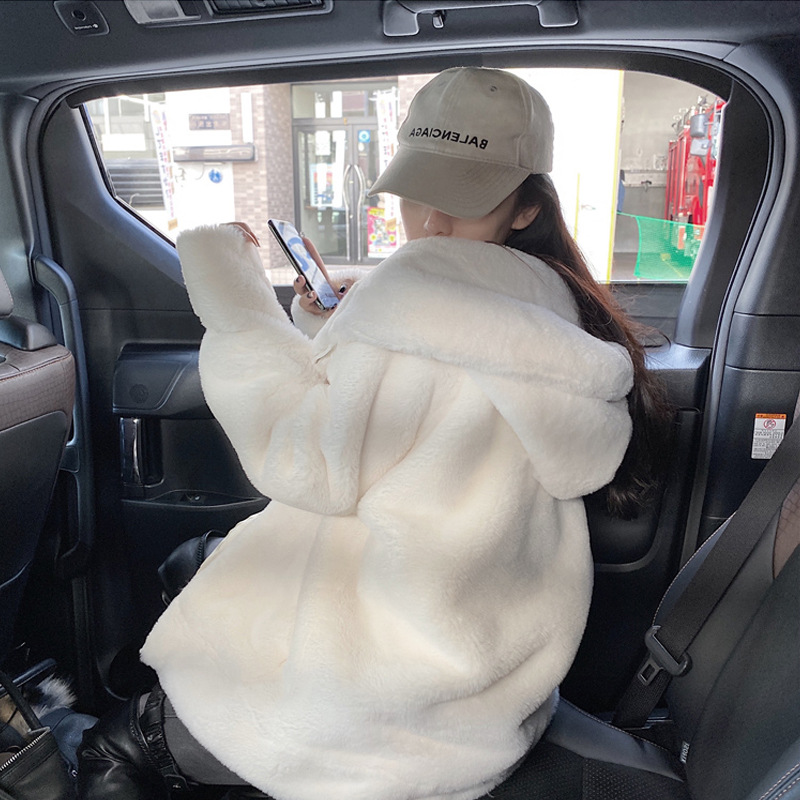 Новая осенне-зимняя куртка 2025 года, свободного кроя, с капюшоном, из плюшевого меха ягнёнка, на флисовой подкладке, утолщенная, имитация меха.