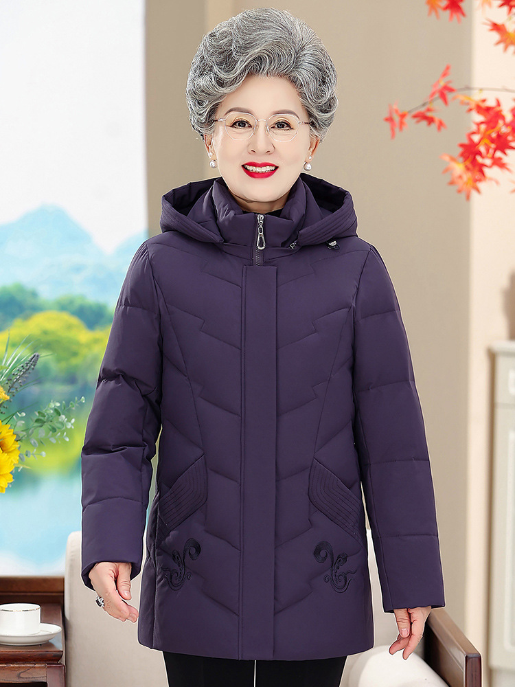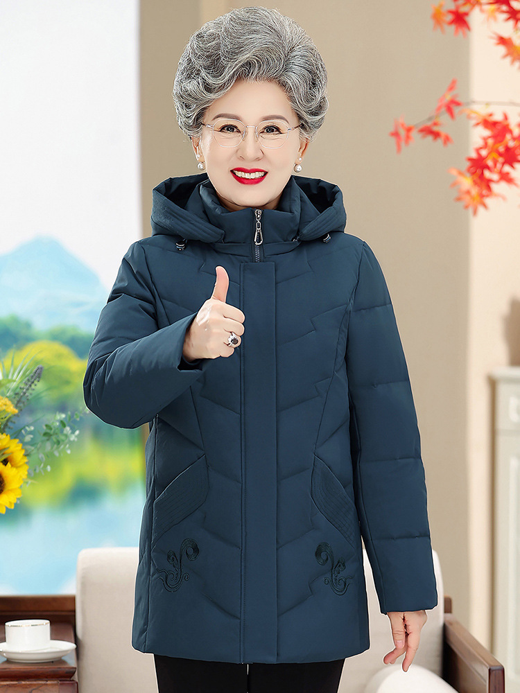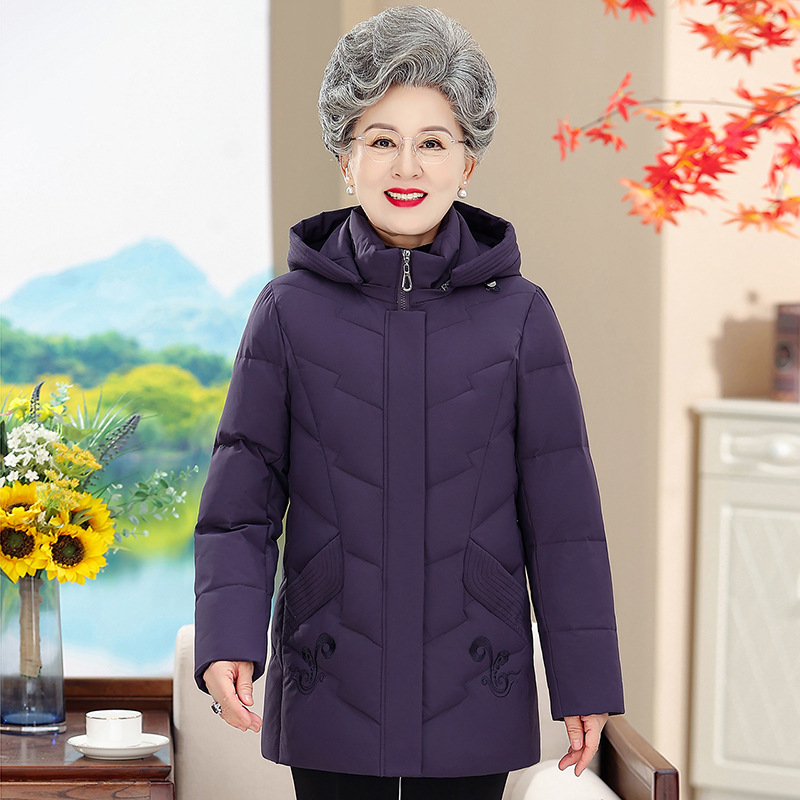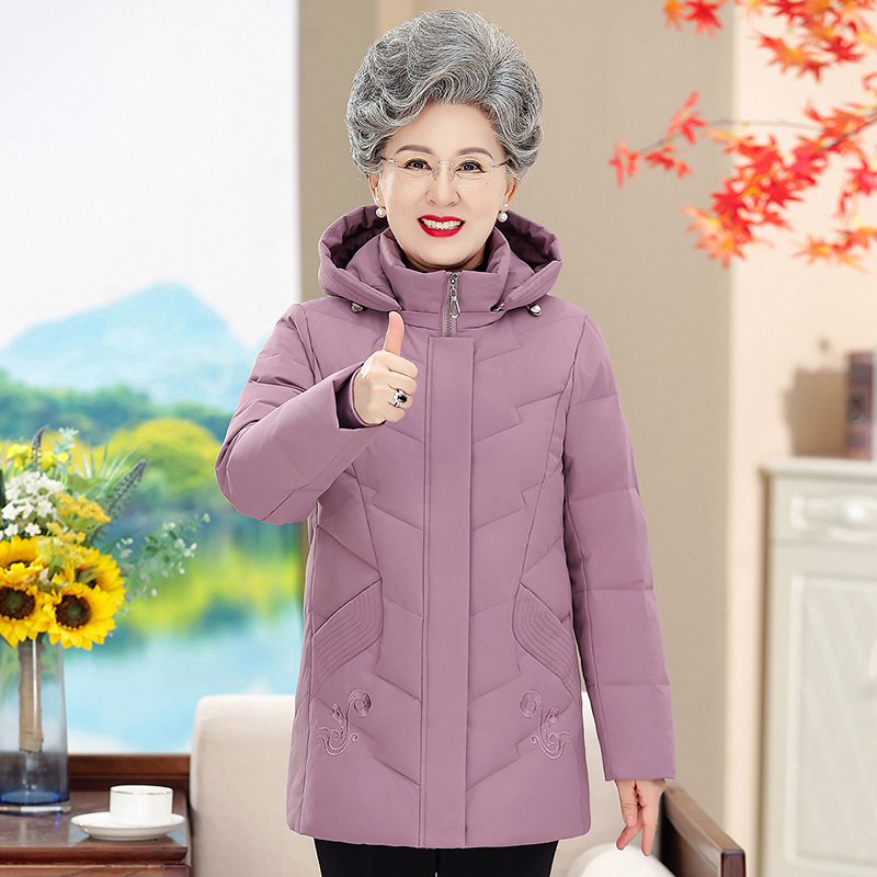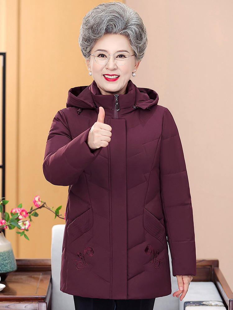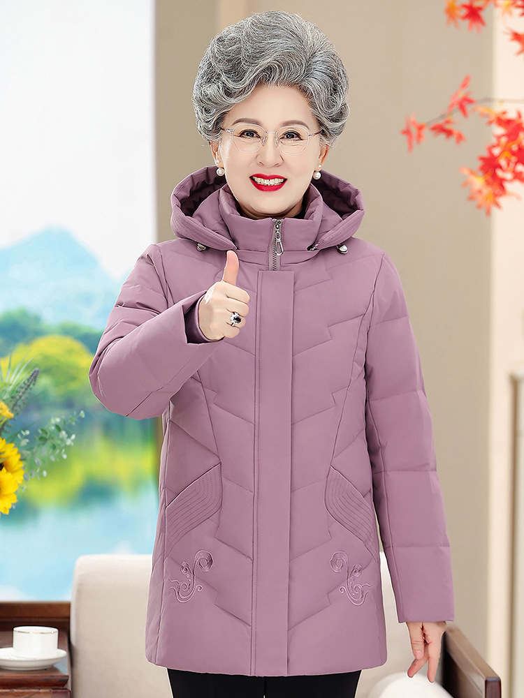 Новый пуховик в иностранном стиле с капюшоном для среднего и пожилого возраста, женская короткая утолщенная зимняя куртка больших размеров для матери, куртка для бабушки