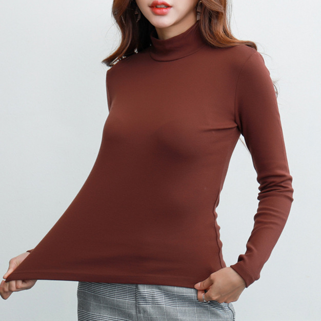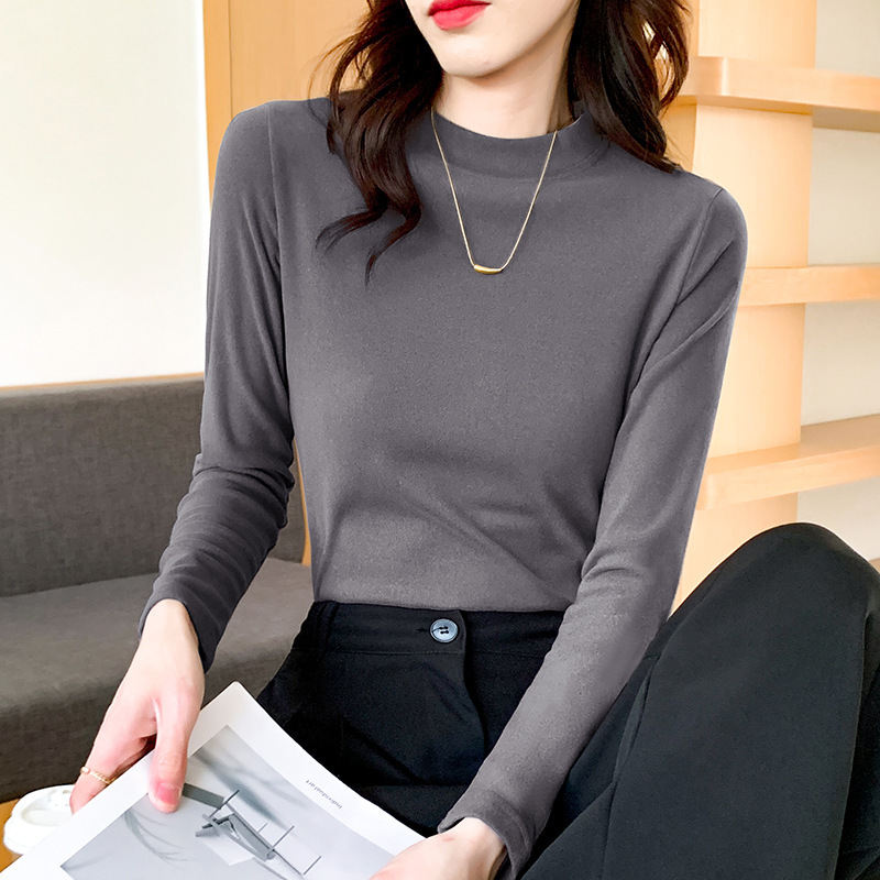 Двусторонняя бархатная теплая нижняя рубашка, женский осенне-зимний однотонный топ, Женская облегающая футболка с флисовой подкладкой из Южной Кореи, женская одежда с длинным рукавом