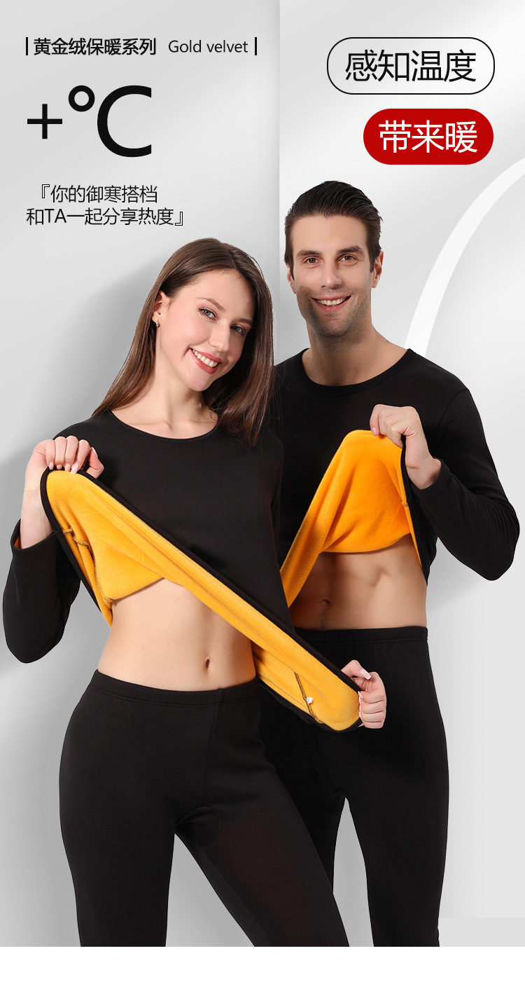 Осенняя одежда и брюки на флисовой подкладке, термобелье, женский золотой бархат, Новинка осени и зимы, костюм для пар, облегающий бархатный мужской с круглым вырезом