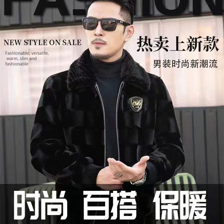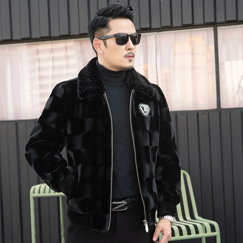 Норковая шуба мужской Bao Kami норка из меха Haining кожаная куртка с лацканом зимняя шуба золотая норка