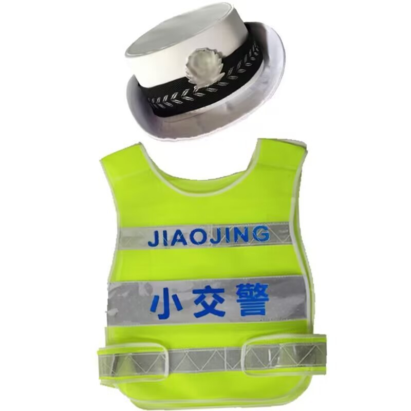 Маленький светоотражающий жилет полицейского; Светоотражающий жилет маленькой ГИБДД; Светоотражающий жилет; Крупная кепка темно-синего цвета [мужской стиль]; Крупная кепка темно-синего цвета [женский стиль]; Большая белая кепка [мужской стиль]; Большая белая кепка [женский стиль]; пожарный шлем