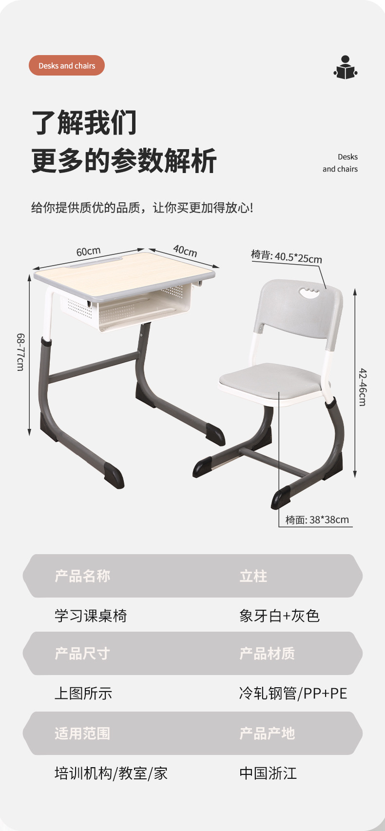2.我们的课桌椅全部打好孔的,不需要专业的安装工具,安装工具本店免费 送。