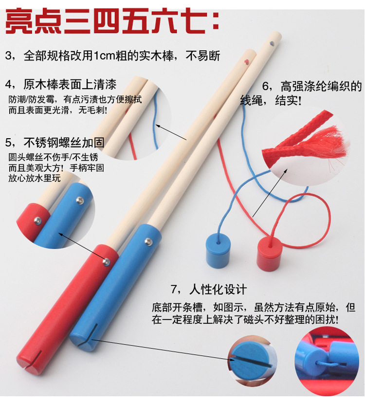 Детская Магнитная игрушка для удочки Деревянная Удочка Детская игра для рыбалки Квадратная игрушка для рыбалки Магнитная удочка