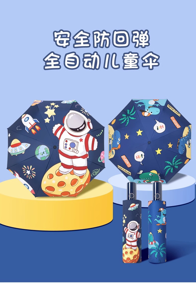 Безопасный детский зонт с защитой от отскока для мальчиков и девочек, ученики начальной школы, специальный автоматический зонт двойного назначения от дождя и дождя для космонавтов