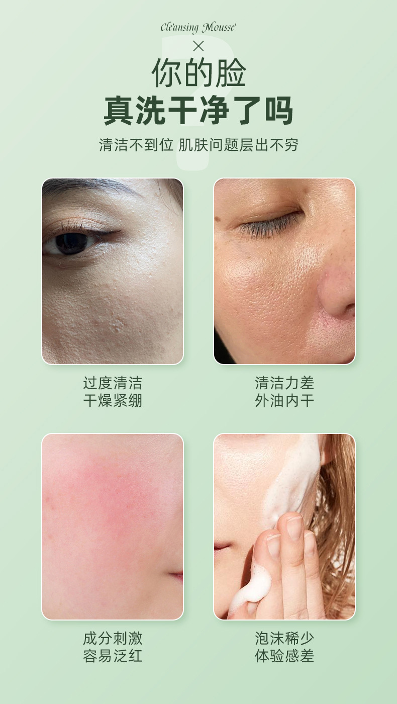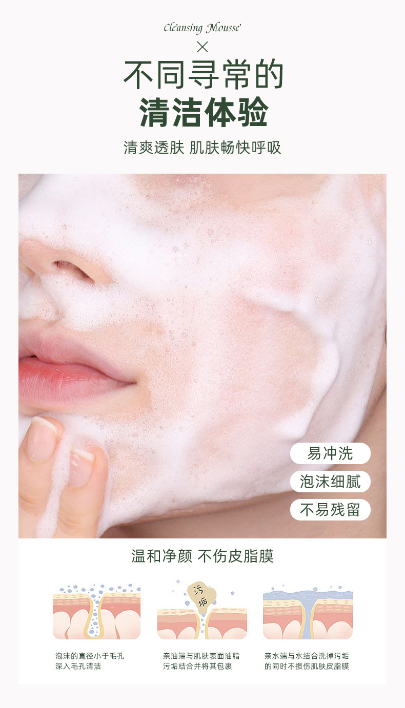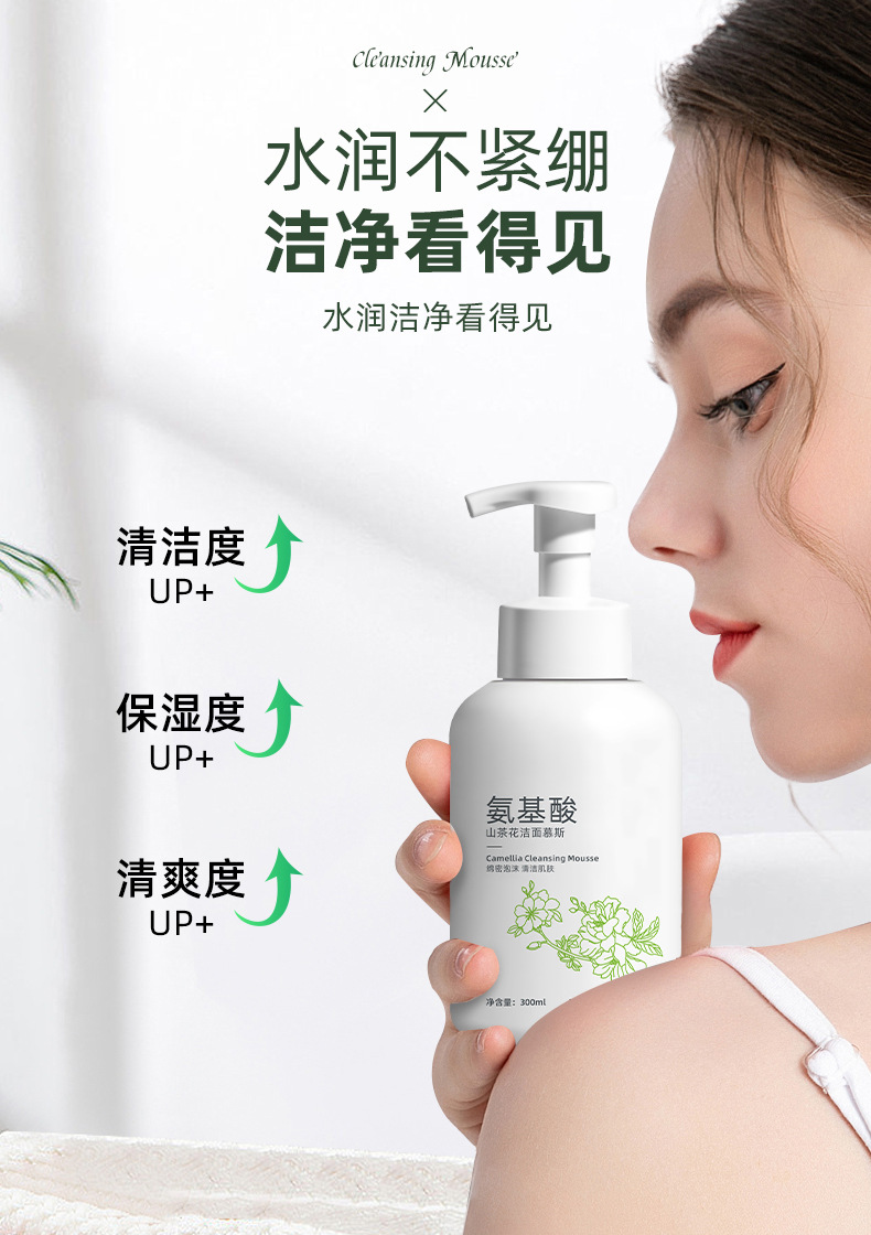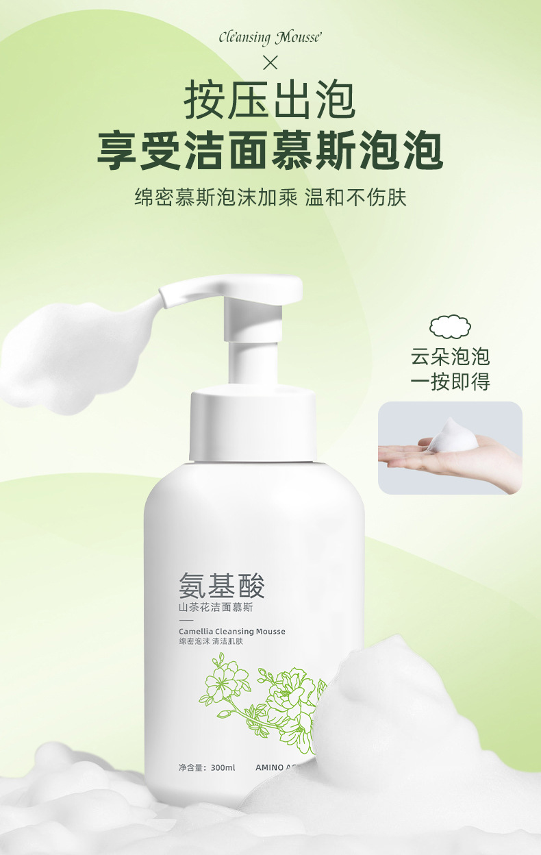 Очищающий мусс для лица с аминокислотами и экстрактом камелии, очищает нежные поры, пенка для умывания с контролем жирности, удаляет макияж, оптом