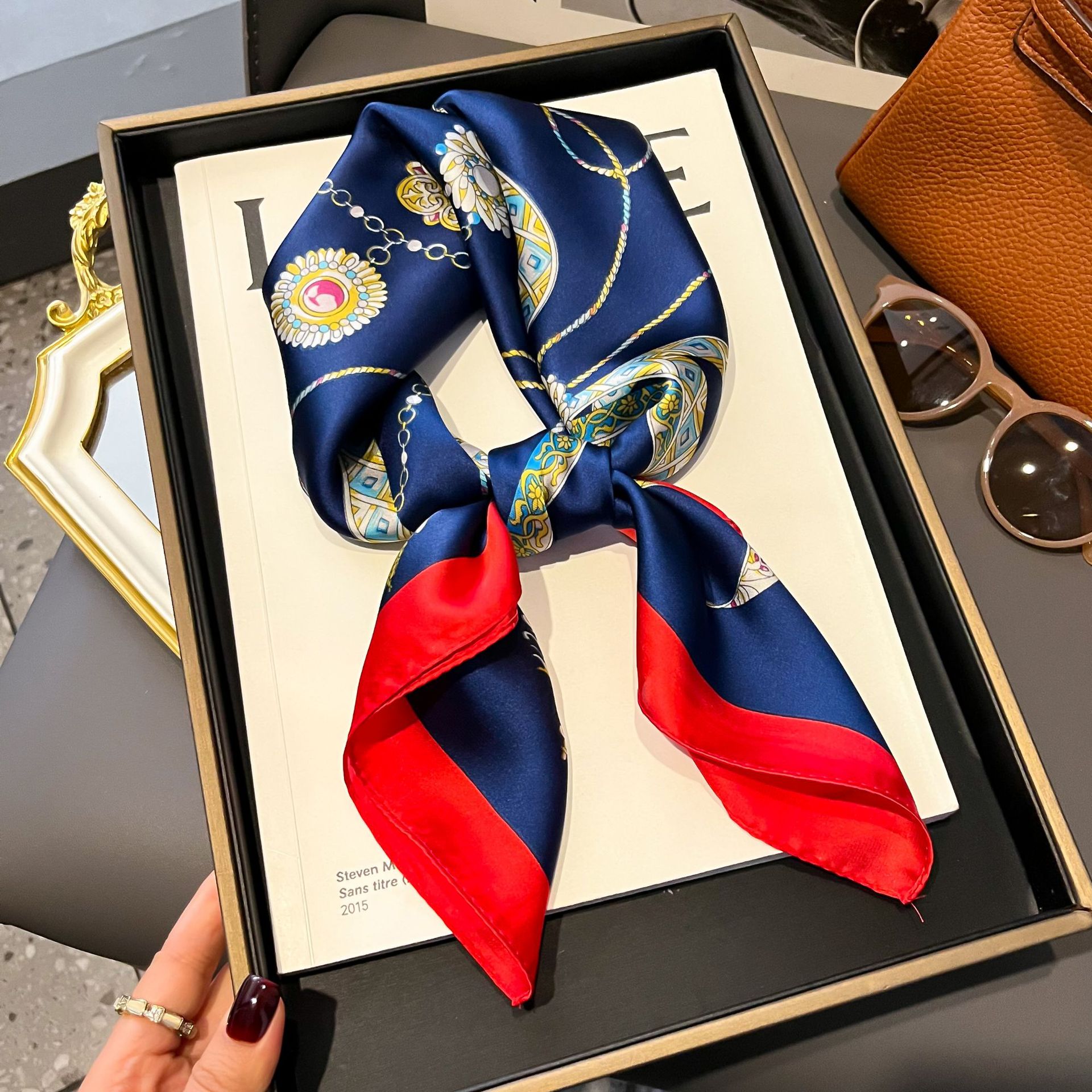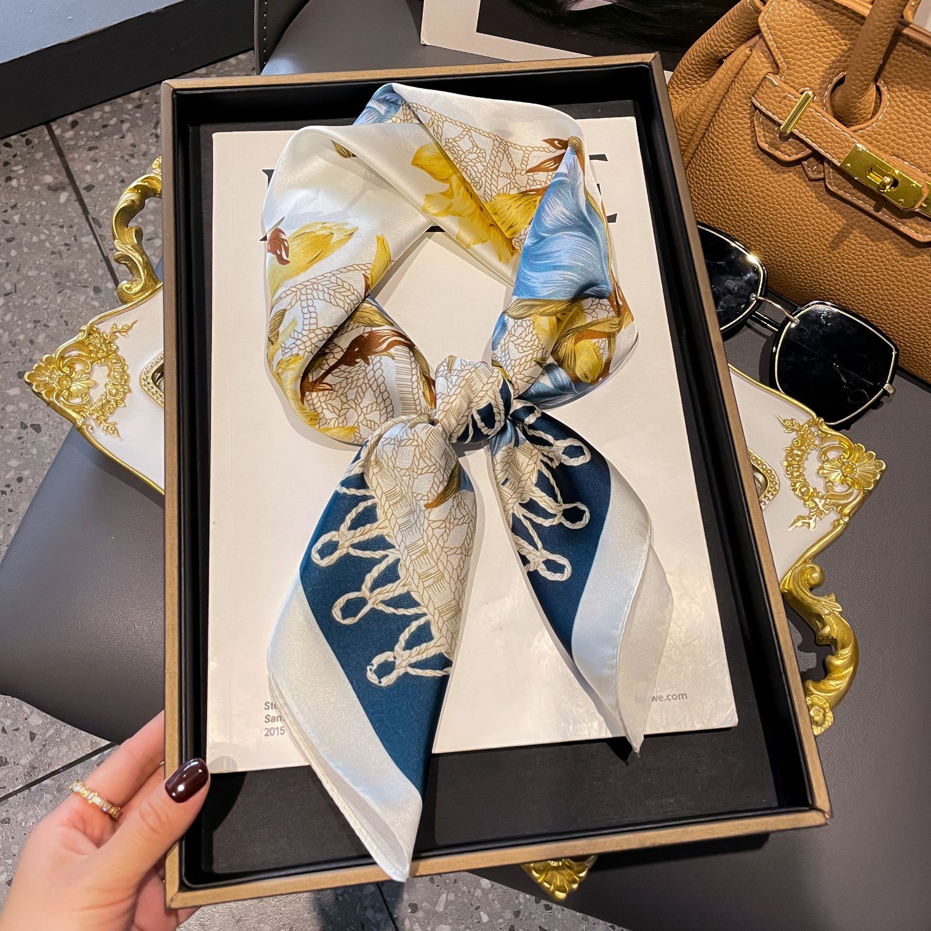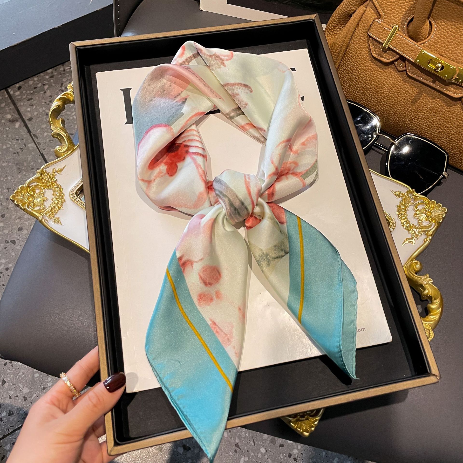 Маленький шелковый шарф Женский Универсальный Высококачественный декоративный квадратный шарф Профессиональный маленький шарф Шелковый новый ленточный галстук в Корейском стиле