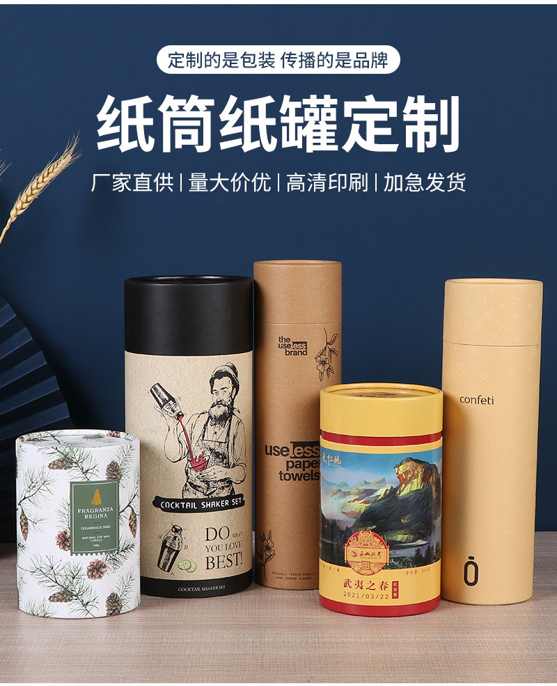 Бумажные банки на заказ Ароматизированный Чай золочение хранение крафт-бумаги банки упаковочная коробка плакат каллиграфия и живопись Подарочная бумажная туба чайные банки на заказ