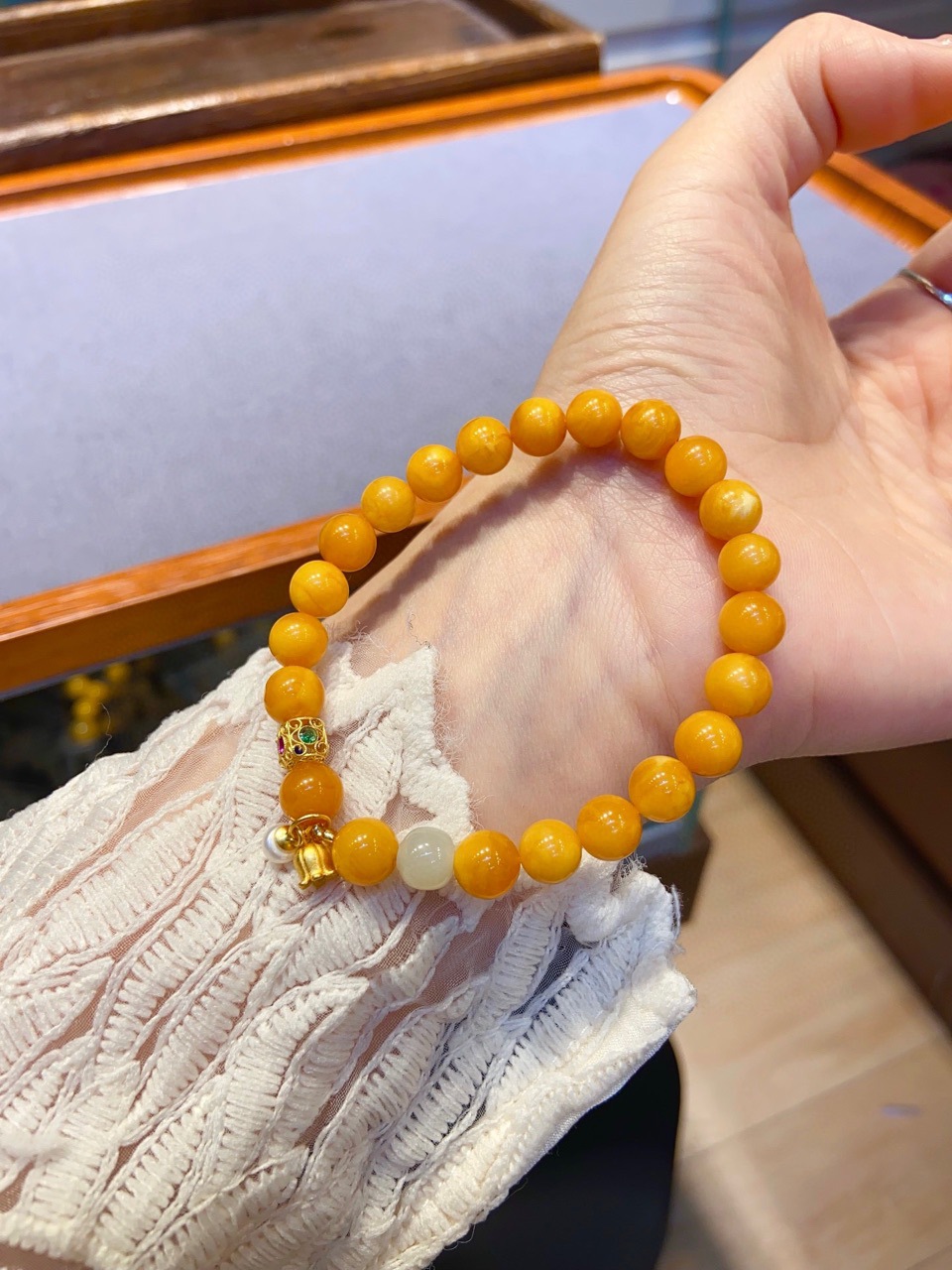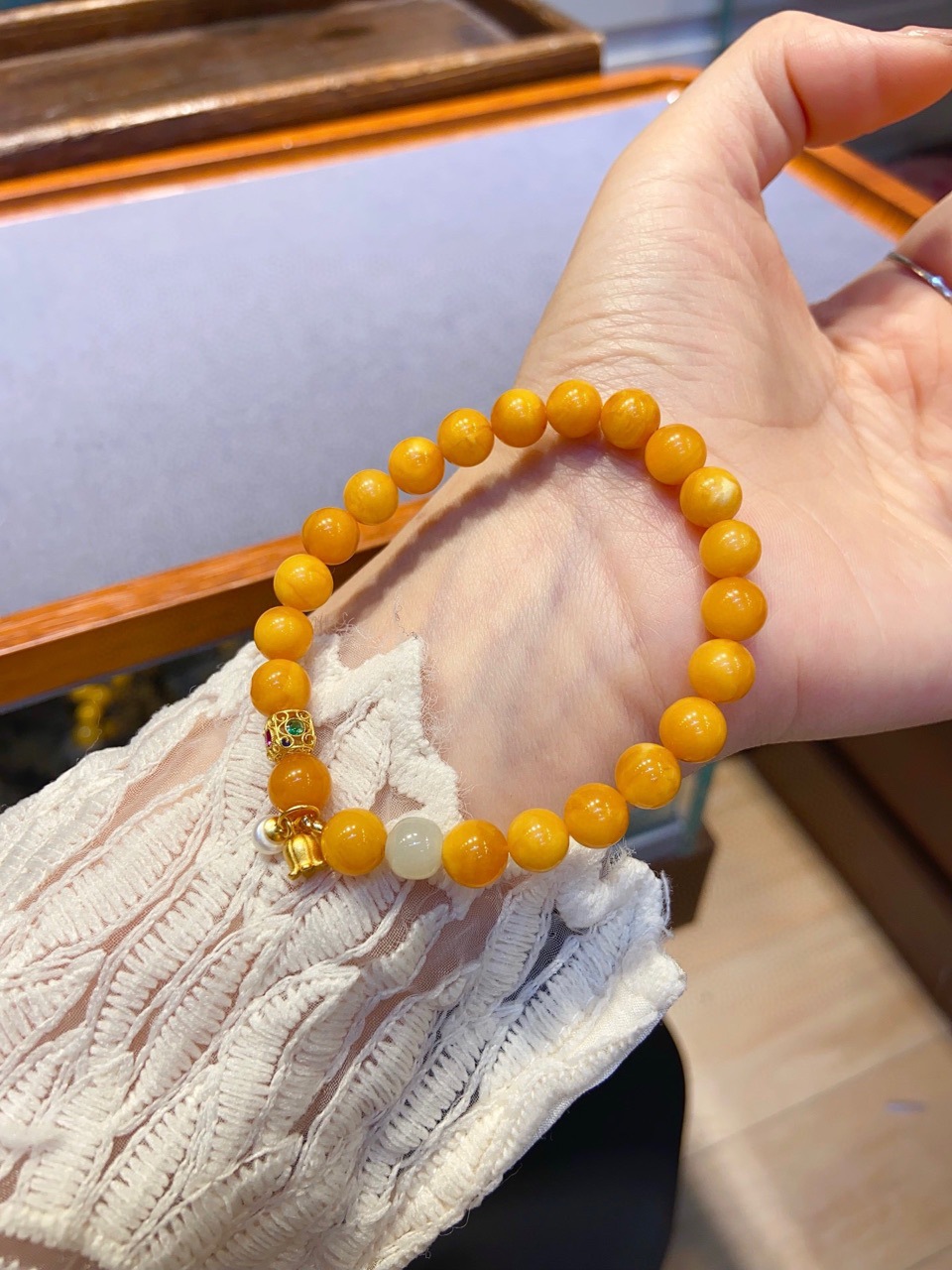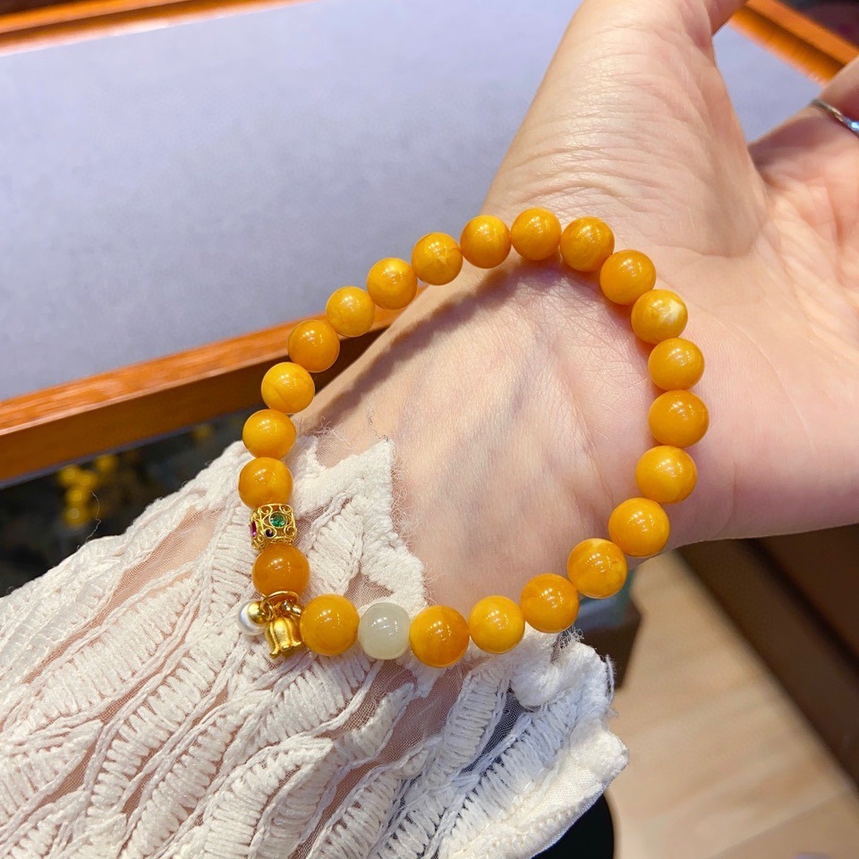 Натуральный воск для пресбиопии браслет из пчелиного воска полный медовый воск для пресбиопии Размер 7,8 мм с нефритом Hetian 925 серебряные аксессуары жемчуг