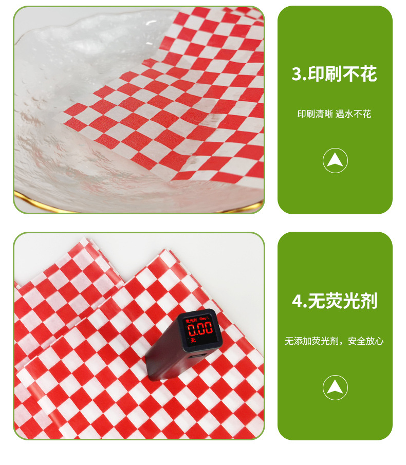 Американский плед Маслостойкая бумага Маслостойкий коврик Бумага Фри Куриный гамбургер Маслостойкая бумага Одноразовая упаковочная бумага Оптовая Продажа с фабрики