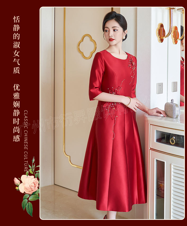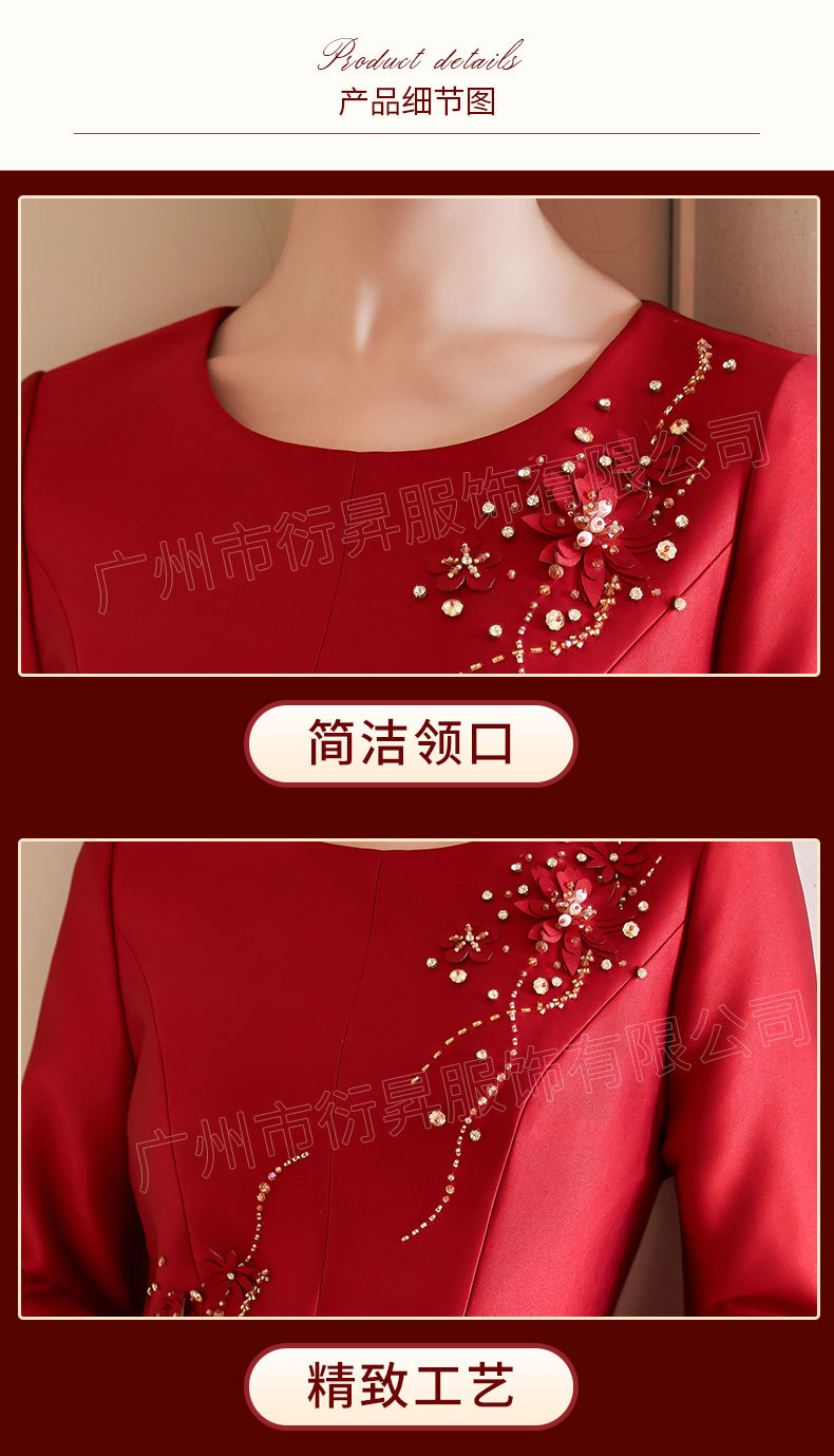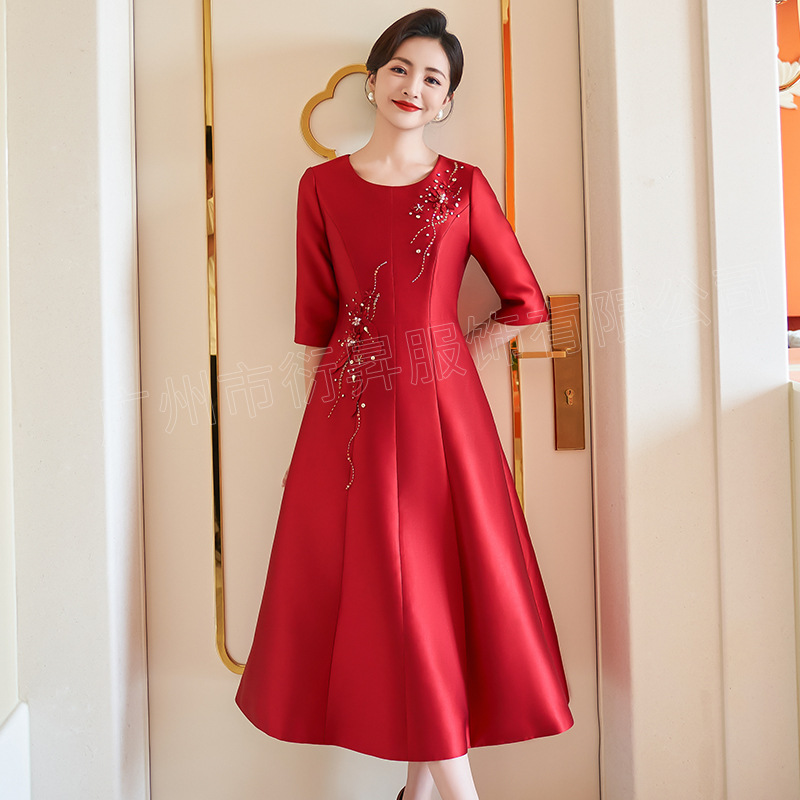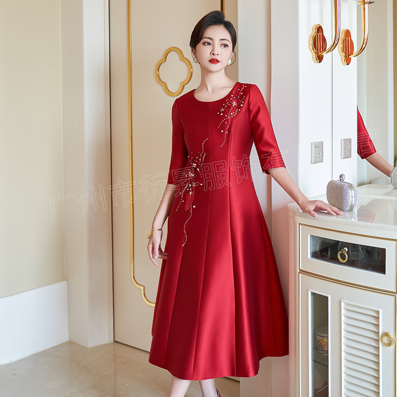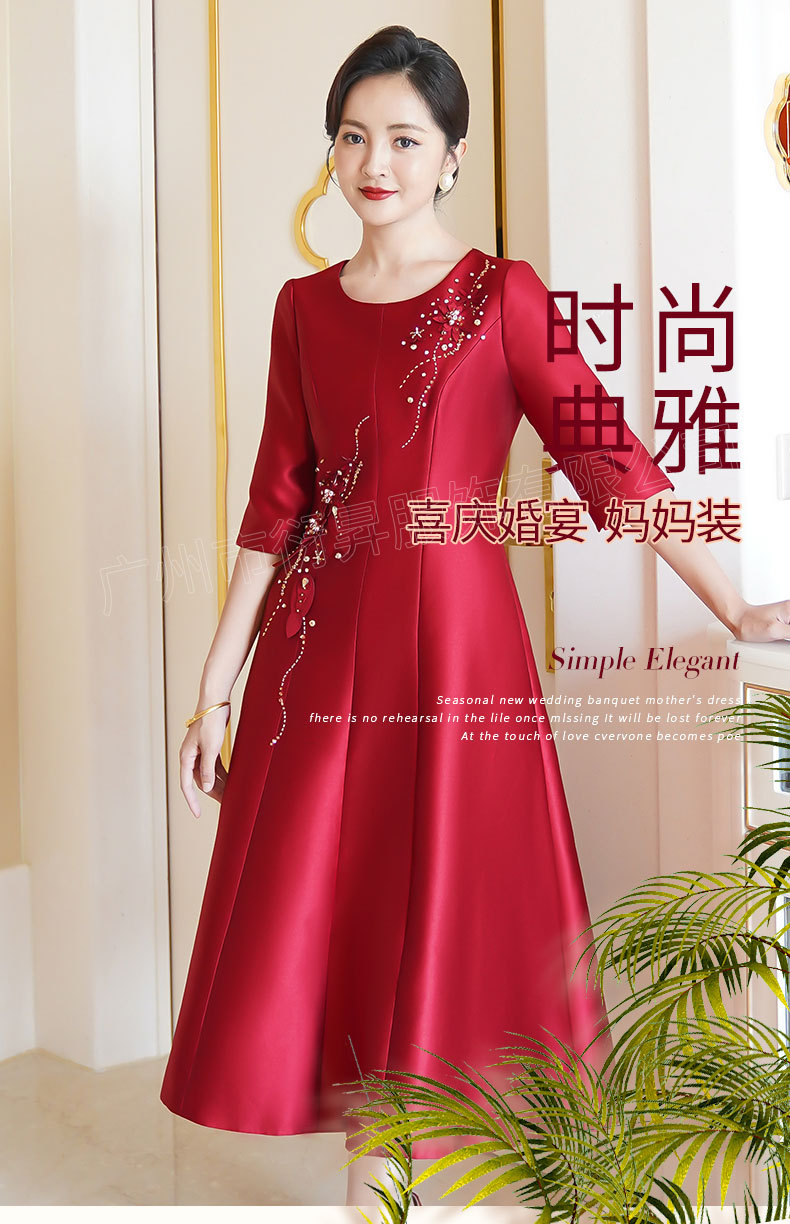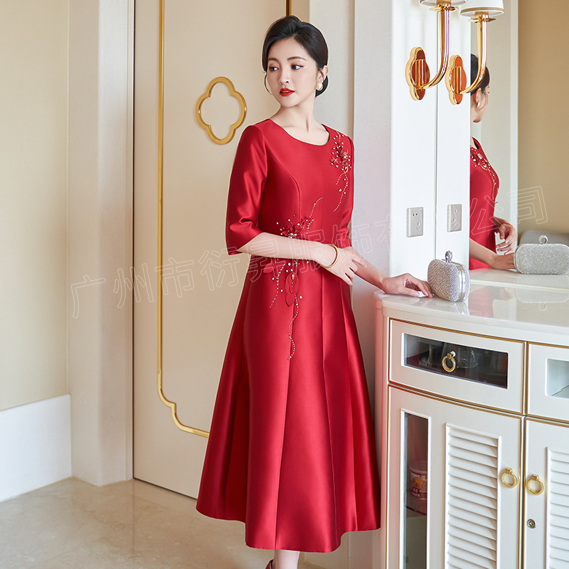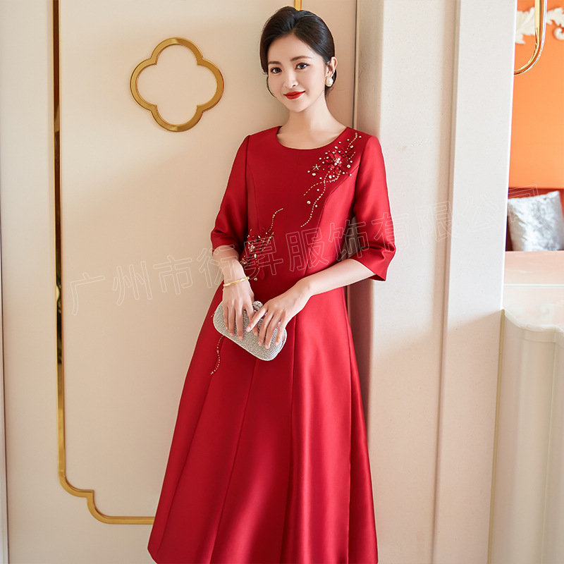 Свадебное банкетное платье для матери Осеннее Новое легкое роскошное платье со средним рукавом из бисера Привет теща Свадебное банкетное красное платье для тостов