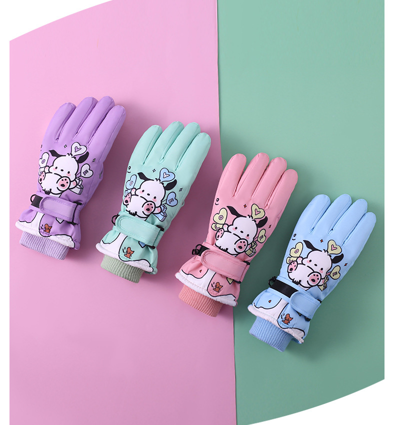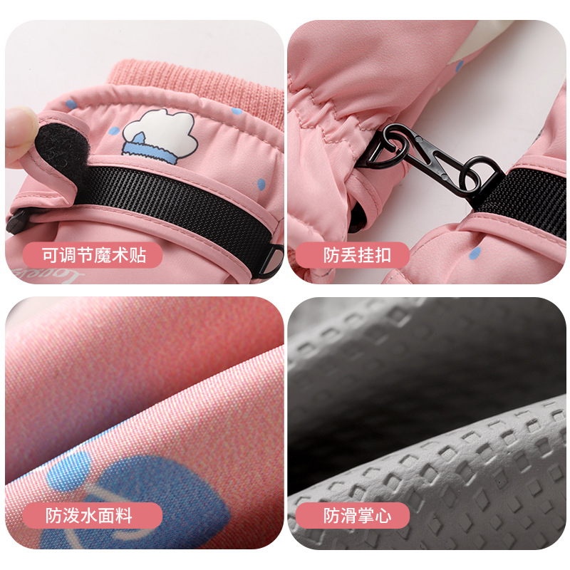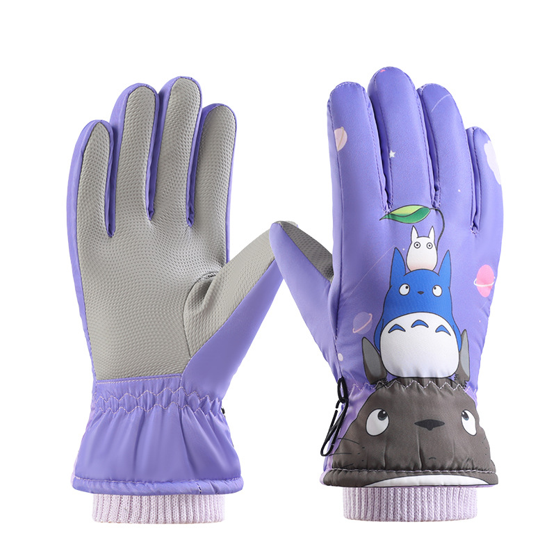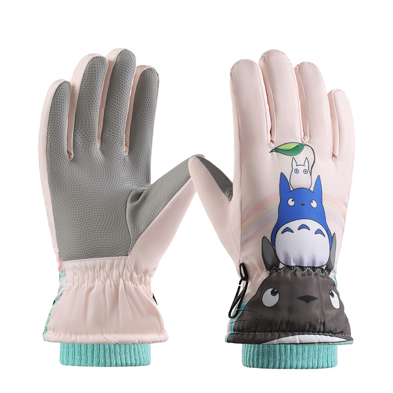 Зимние детские лыжные перчатки на открытом воздухе бархат теплый сенсорный экран водонепроницаемый мультфильм 7-13 лет лыжные перчатки