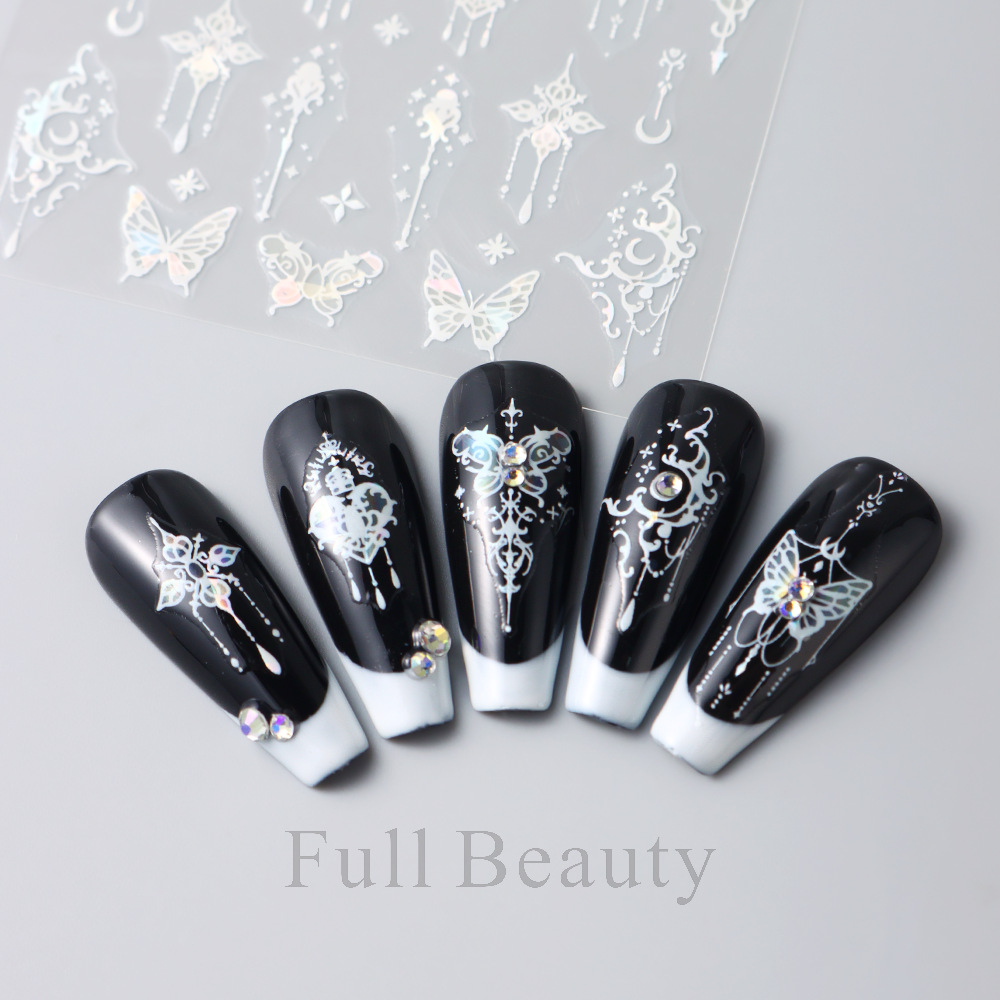 Новые наклейки для ногтей оптом ins лазерный замок Бабочки Фея развевающаяся бабочка клей наклейки для ногтей