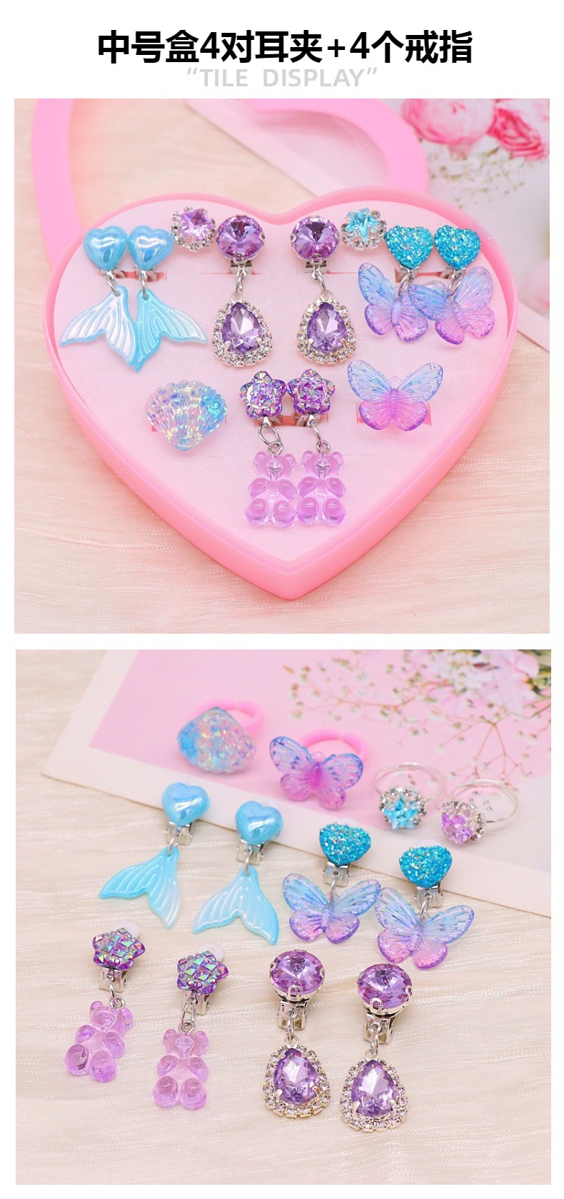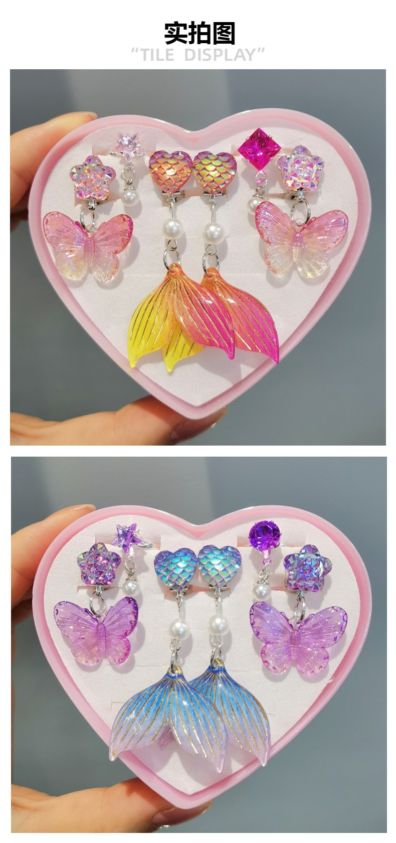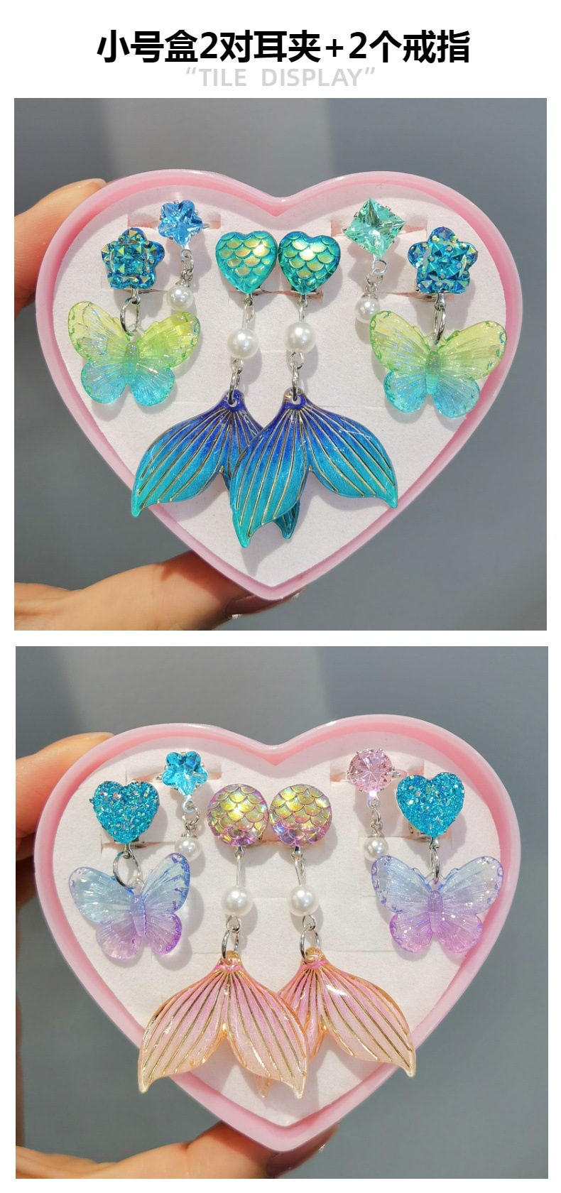 Новый цвет радуги (маленькая коробка); Новый Красочный розовый (маленькая коробка); Синяя фиолетовая бабочка + пудра рыбий хвост (маленькая коробка); Фиолетовая бабочка + фиолетовый рыбий хвост (маленькая коробка); Розовая бабочка + розовый рыбий хвост (маленькая коробка); Сине-Зеленая бабочка + синий рыбий хвост (маленькая коробка); Синяя фиолетовая бабочка (средняя коробка); Розовая Роза бабочка (средняя коробка); Синяя и Зеленая бабочка (средняя коробка); Розовая фиолетовая бабочка (средняя коробка); Радуга Бабочка Ухо Клип; Синий Фиолетовый Бабочка Ухо клип; Розовая Бабочка Ухо клип; Фиолетовый Бабочка Ухо клип; Синий и зеленый Бабочка Ухо клип; Радуга рыбий хвост уха клип; Розовый рыбий хвост ухо клип; Фиолетовый рыбий хвост уха клип; Роза красный рыбий хвост уха клип; Синий рыбий хвост ухо клип