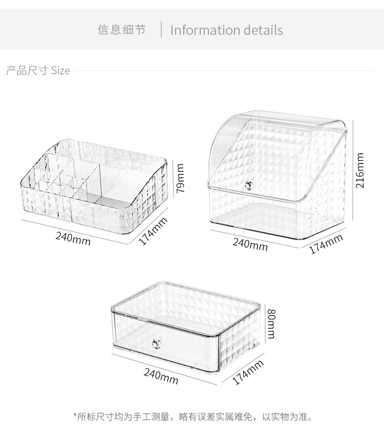 箱规:(防尘盒:1个/箱 )(抽屉:20个/箱)(分格:20个/箱)