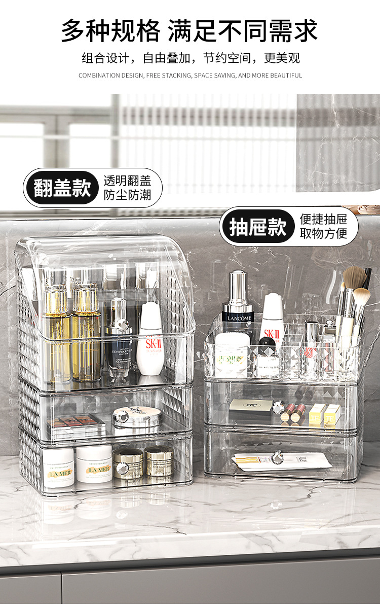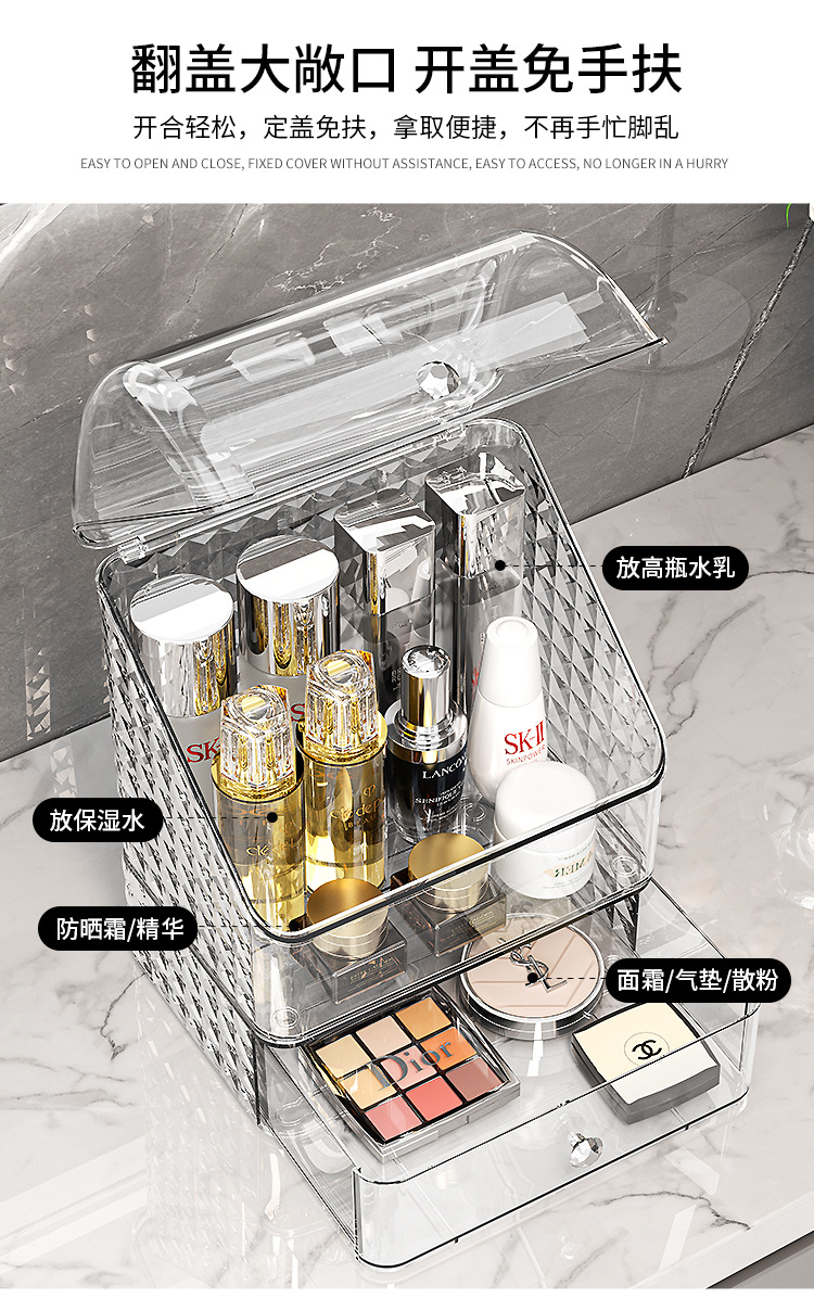Косметический органайзер, настольный органайзер для уходовой косметики, кейс для макияжа, пылезащитный органайзер для туалетного столика, подставка для хранения умывальника