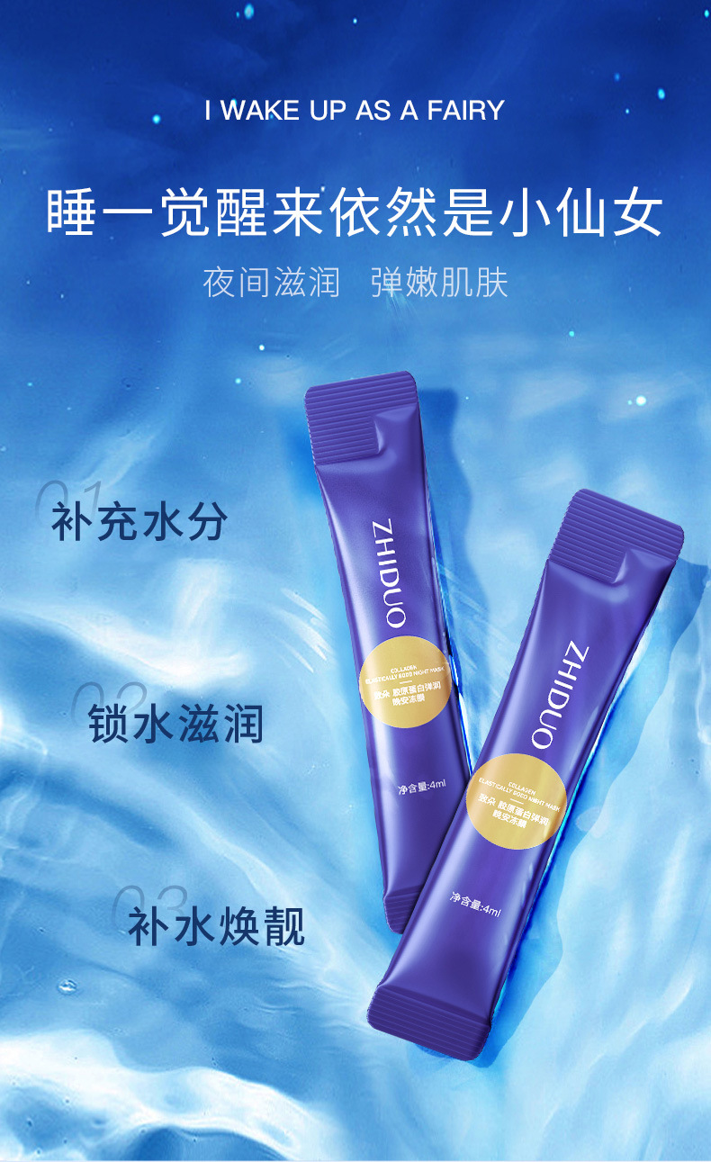 Оптовая продажа: Ночная увлажняющая маска-патч Zhiduo Collagen Elastic Moisturizing Good Night Freeze Mask, не требующая смывания, для глубокого увлажнения и восстановления кожи во время сна.