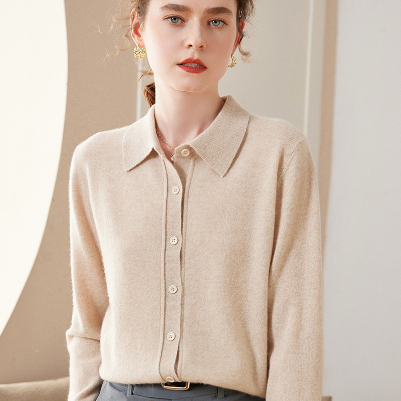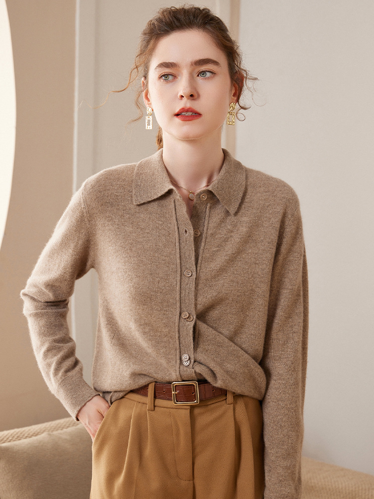 Осенне-Зимний новый кашемировый кардиган с воротником POLO, женская модная Свободная трикотажная рубашка с длинным рукавом, свитер, пальто