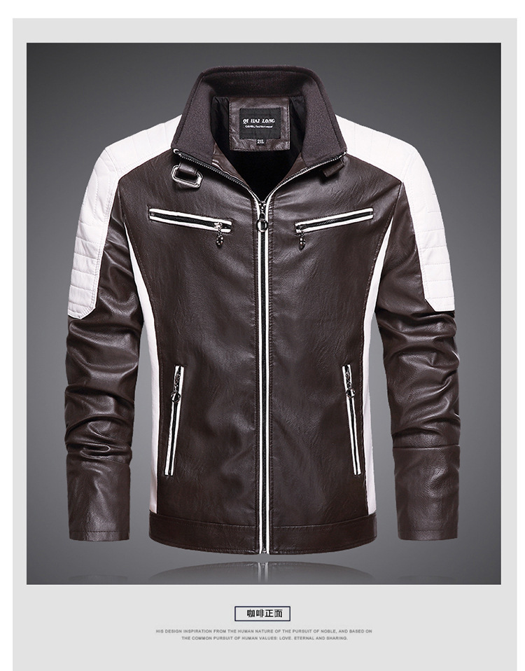 2025 Трансграничная внешняя торговля Осенняя и зимняя повседневная паровозная кожаная куртка мужская мода воротник ретро теплая кожаная куртка