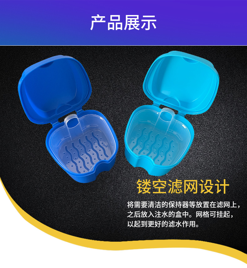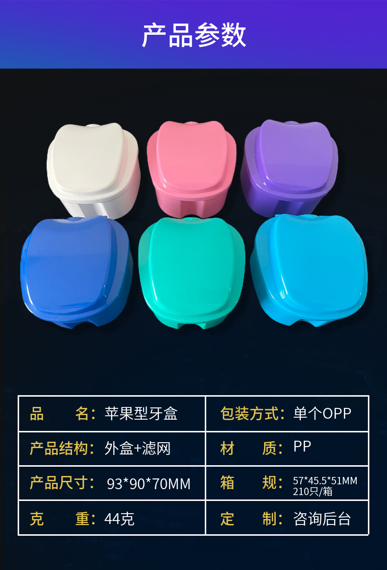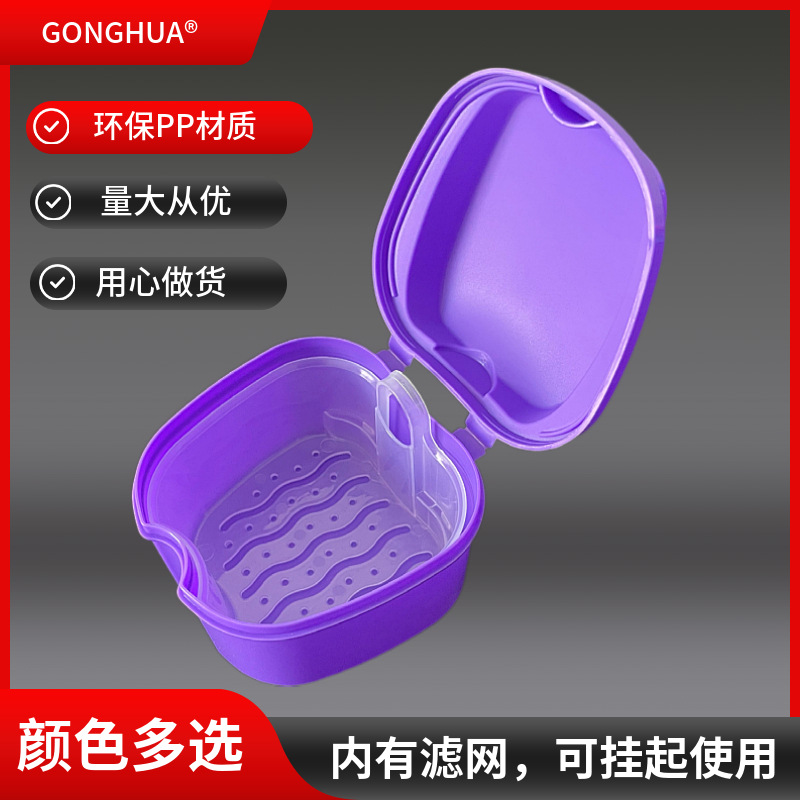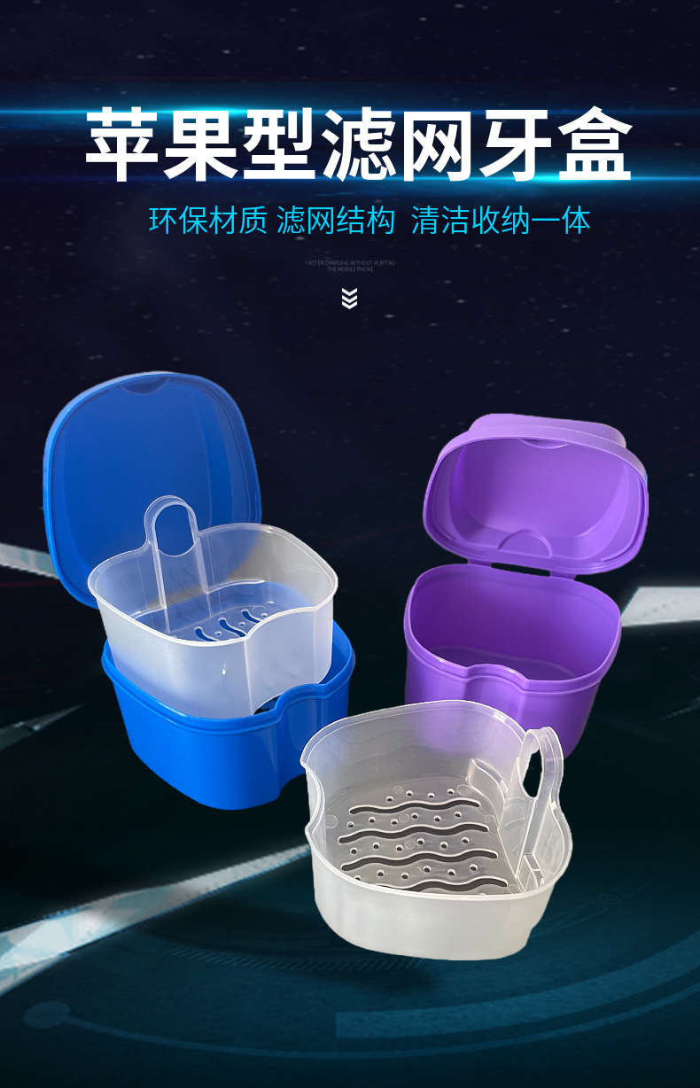 Яблочный зубной ящик с сеткой можно повесить сетчатый фильтр, пластиковая фиксаторная коробка, полный рот, зубной протез, коробка для хранения зубов