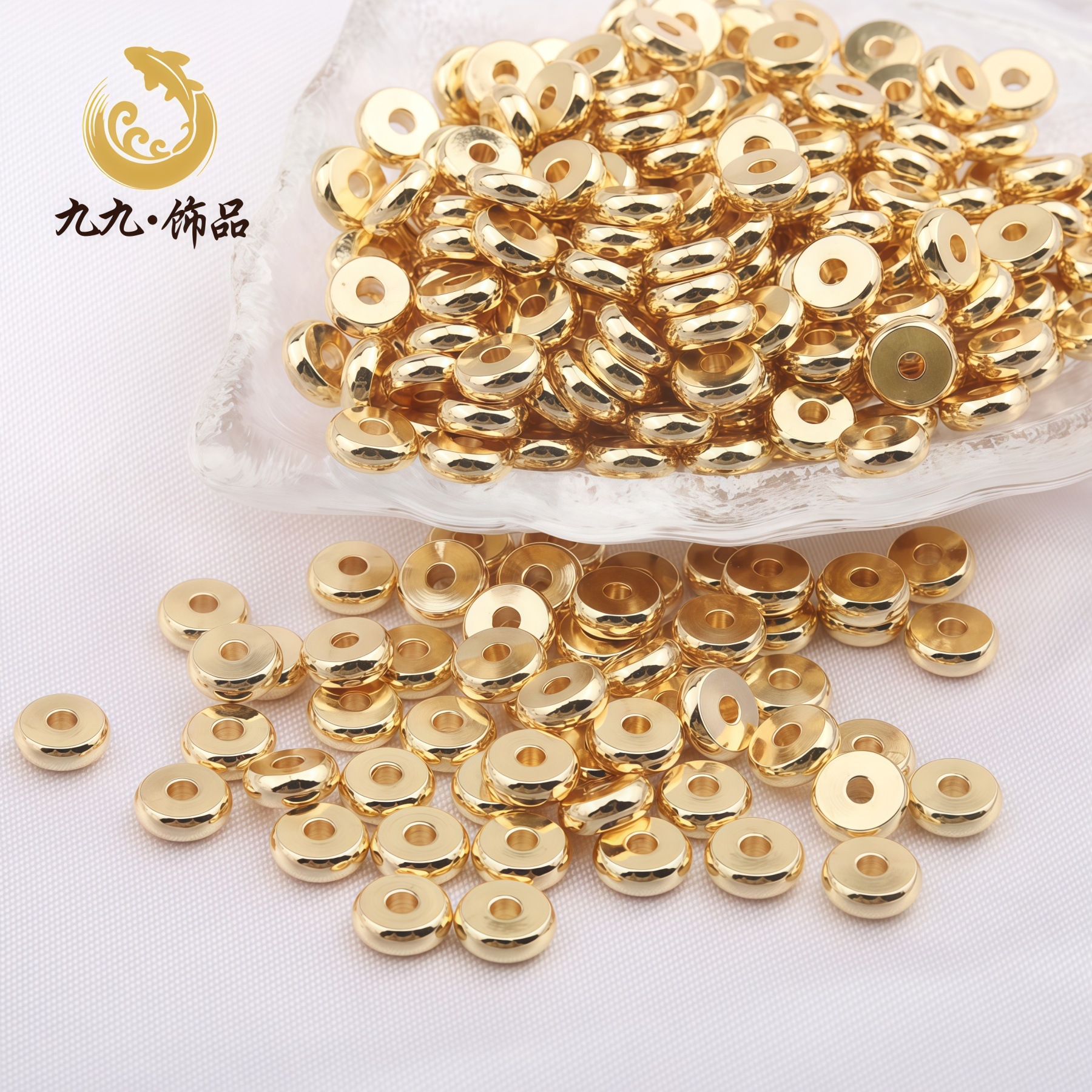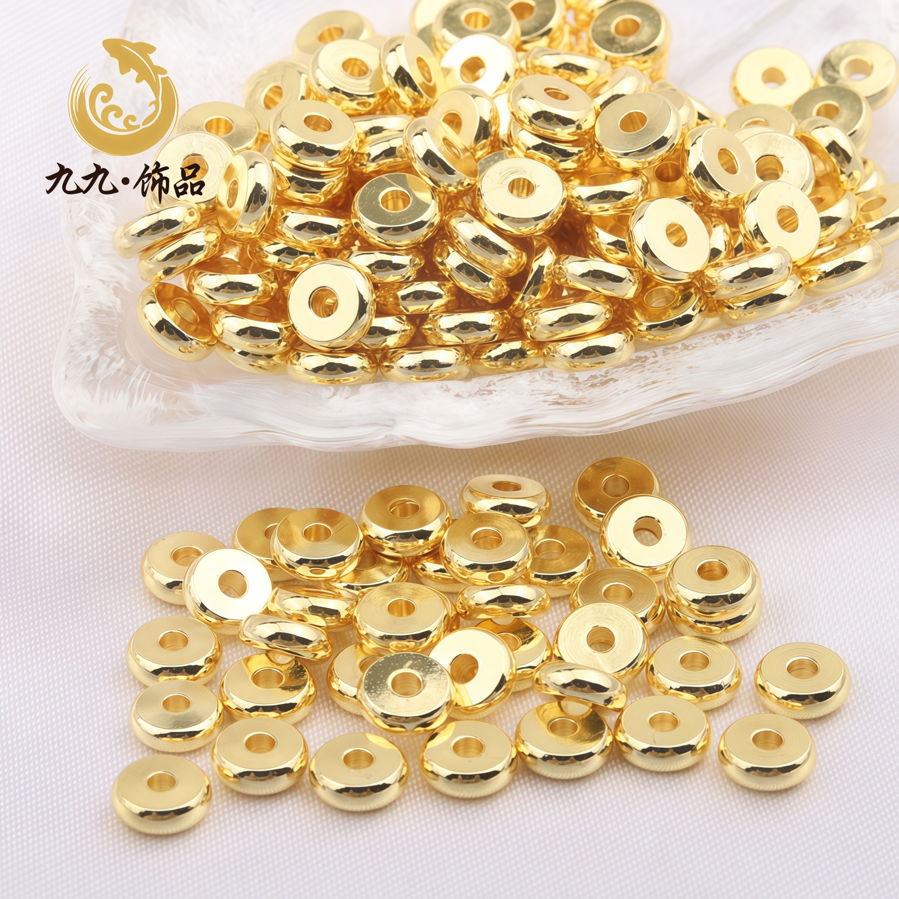 Бусины-разделители круглой формы, гладкие, с покрытием из 18-каратного золота, сохраняющие цвет, плоские шайбы для самостоятельного изготовления браслетов, ожерелий и других украшений.