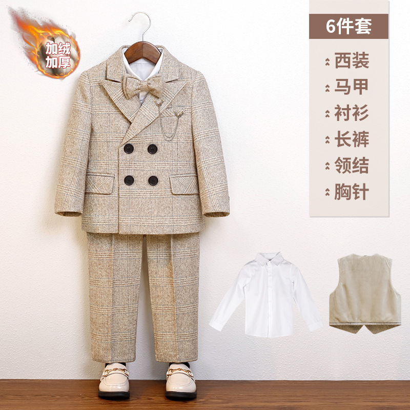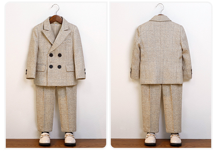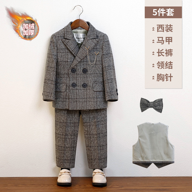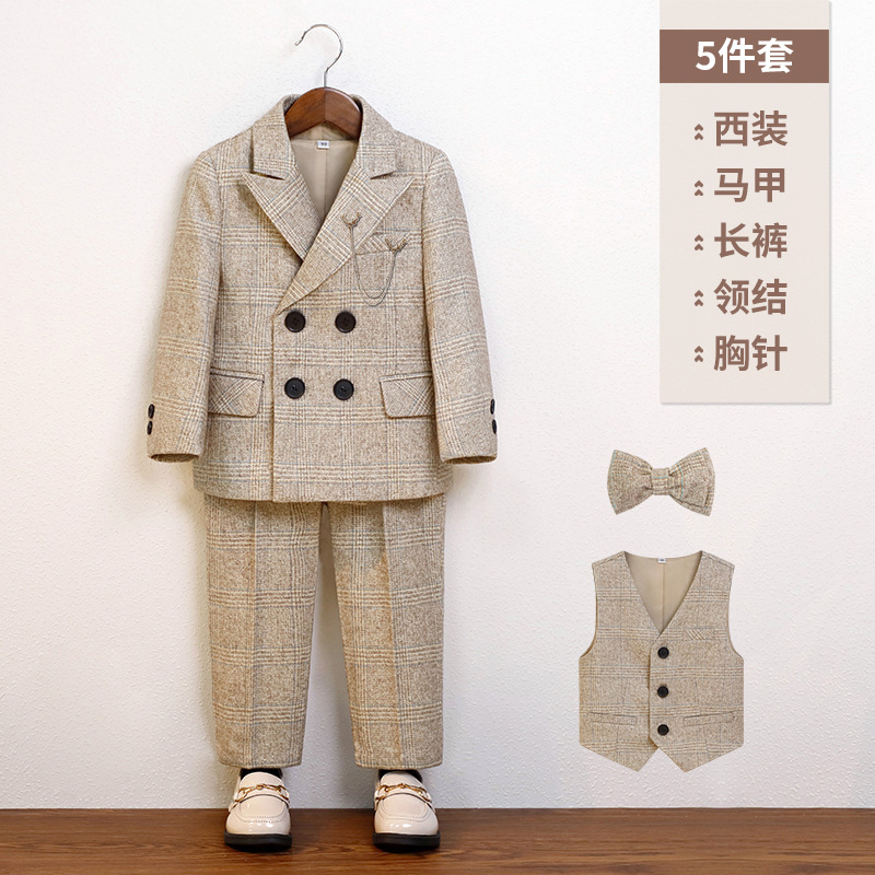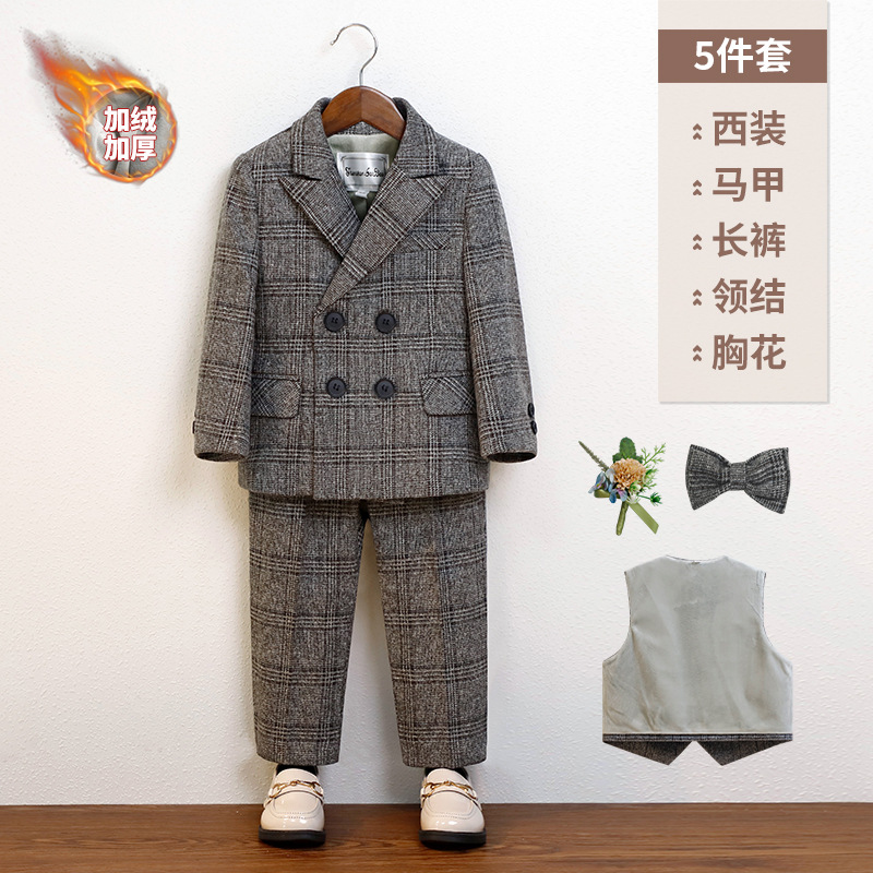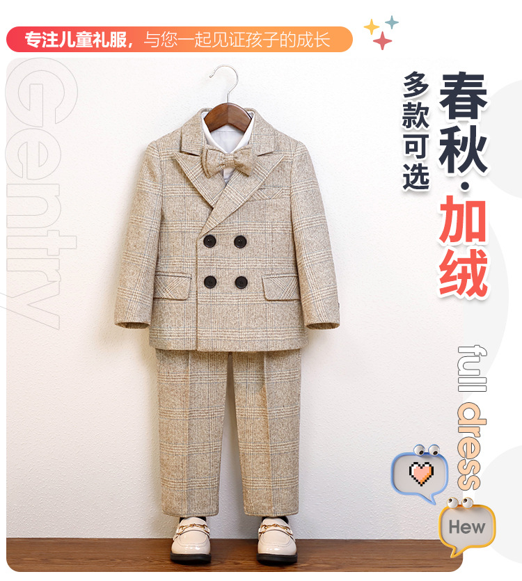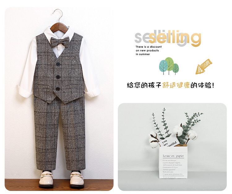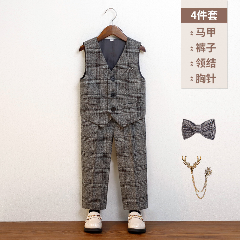 Детский осенне-зимний костюм Костюм в Британскую клетку, комплект-жилет, платье для мальчиков на день рождения, Цветочное платье для девочек, платье для выступления хозяина