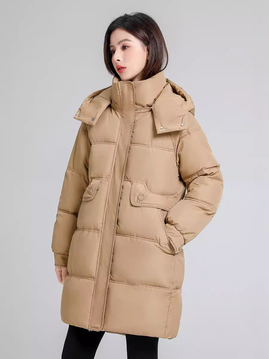 2025 новая зимняя пуховая куртка для женщин средней длины модная хлопковая верхняя одежда с капюшоном утепленная зимняя хлопковая куртка
