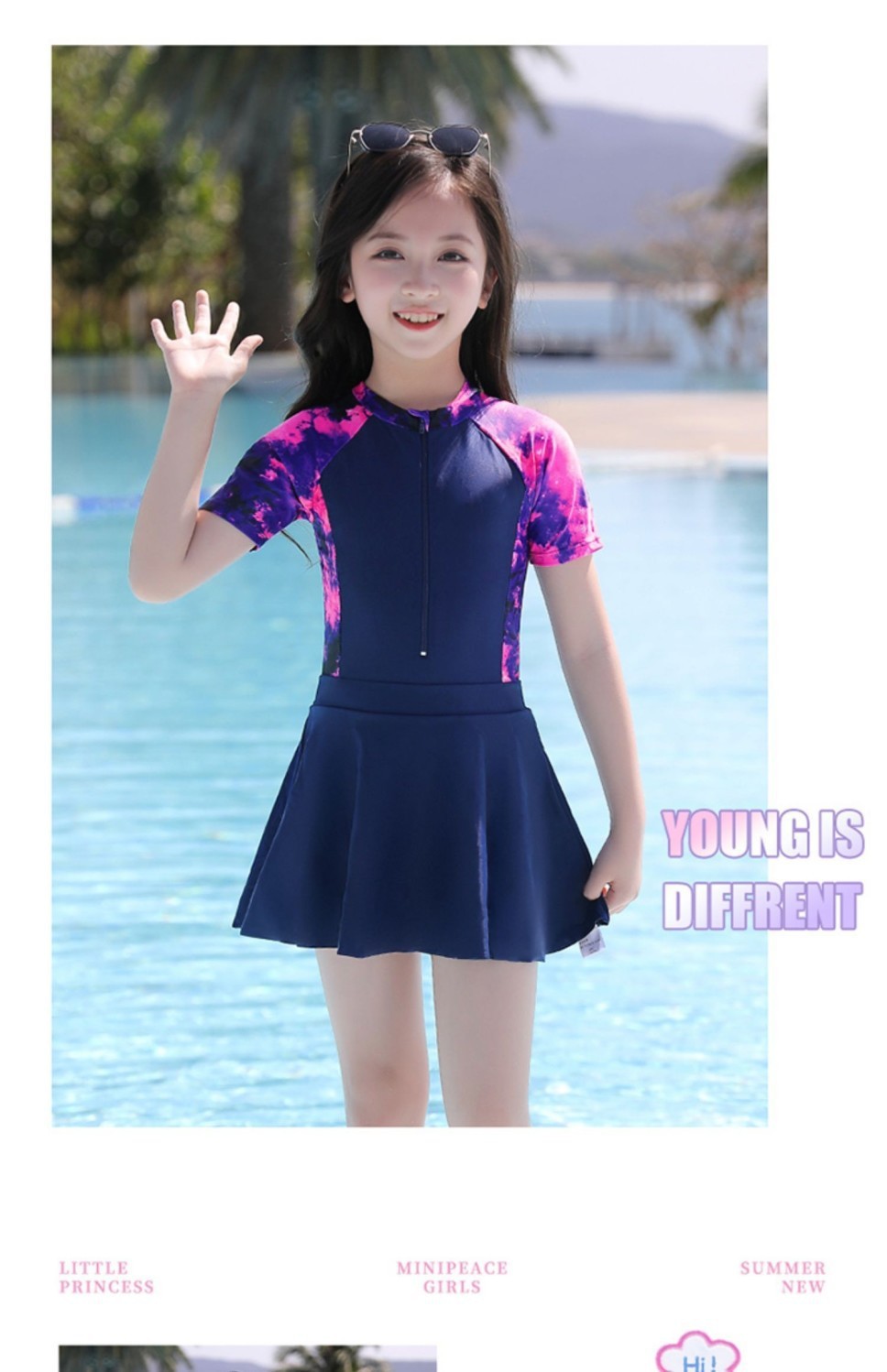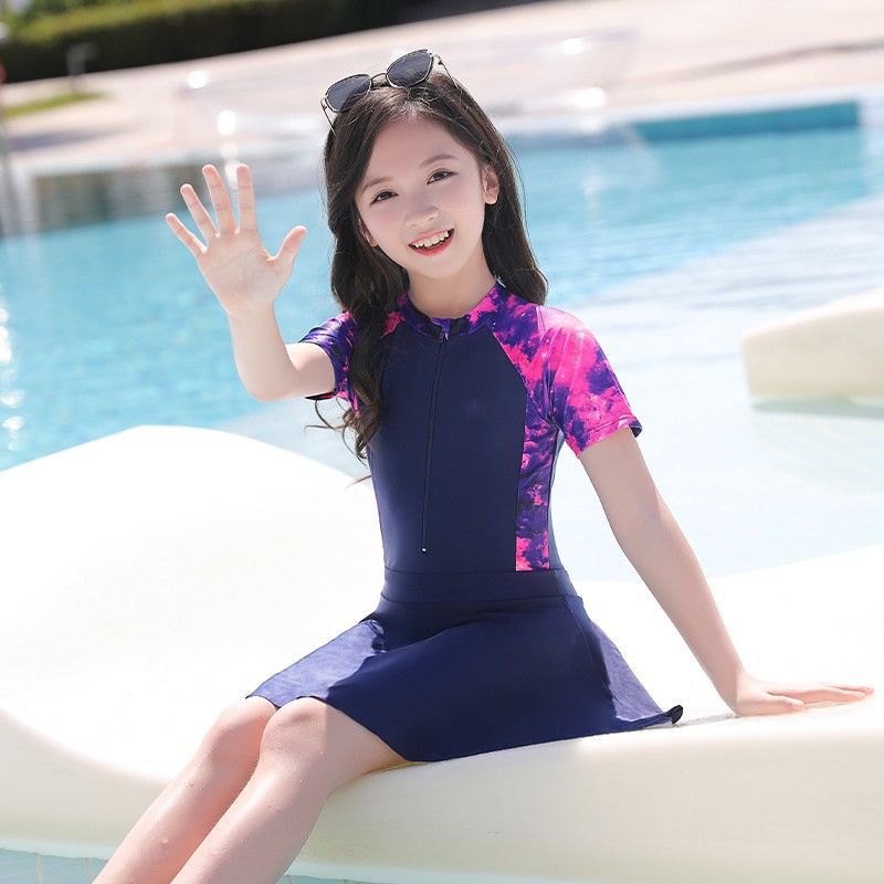 Купальник для родителей и детей, женский новый спортивный Повседневный Спортивный купальник в Корейском стиле с короткими рукавами и юбкой в том же стиле для матери и дочери, популярный весенний купальник