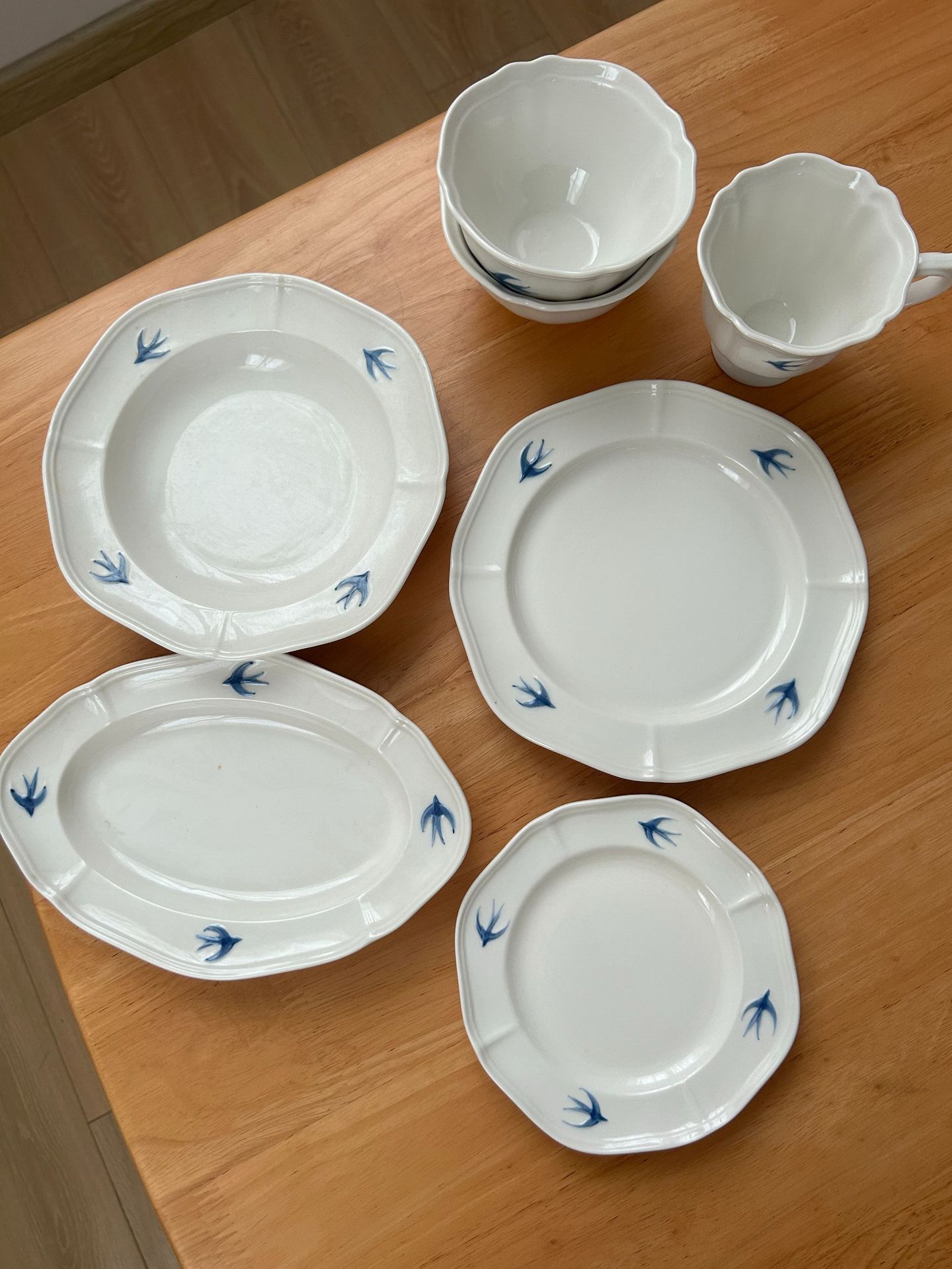 Глубокая посуда Ласточка 72 шт. в коробке; Тарелка овальная Ласточка 80 штук в коробке; 120 мисок в коробке; 60 чашек в коробке; Ласточкины диски 90 штук в коробке; 6inch диска «Ласточка», 120 штук в коробке.