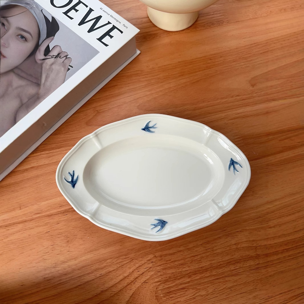Японский Стиль Ласточка рельефная тарелка винтажная Десертная Тарелка обеденная Тарелка Глубокая тарелка керамическая посуда тарелка