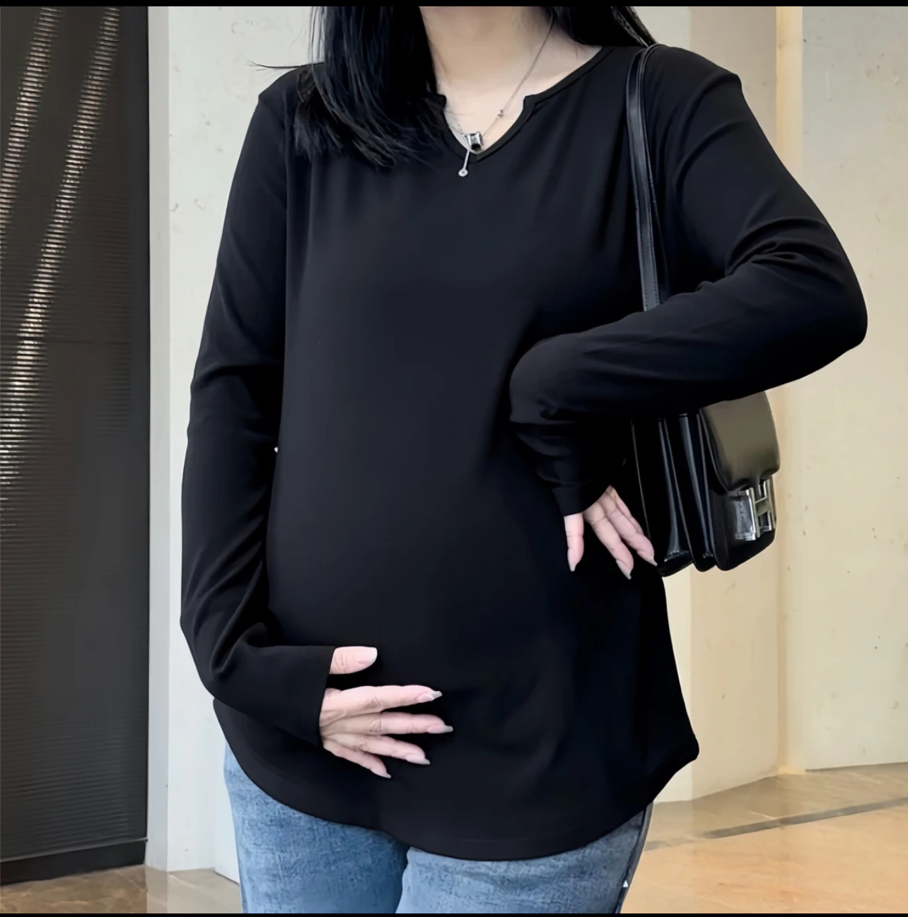 Базовая рубашка для беременных Женская осенне-зимняя новая футболка больших размеров с внутренней стороны Топ с длинными рукавами Верхняя одежда Маленькая Повседневная универсальная Модная одежда с V-образным вырезом