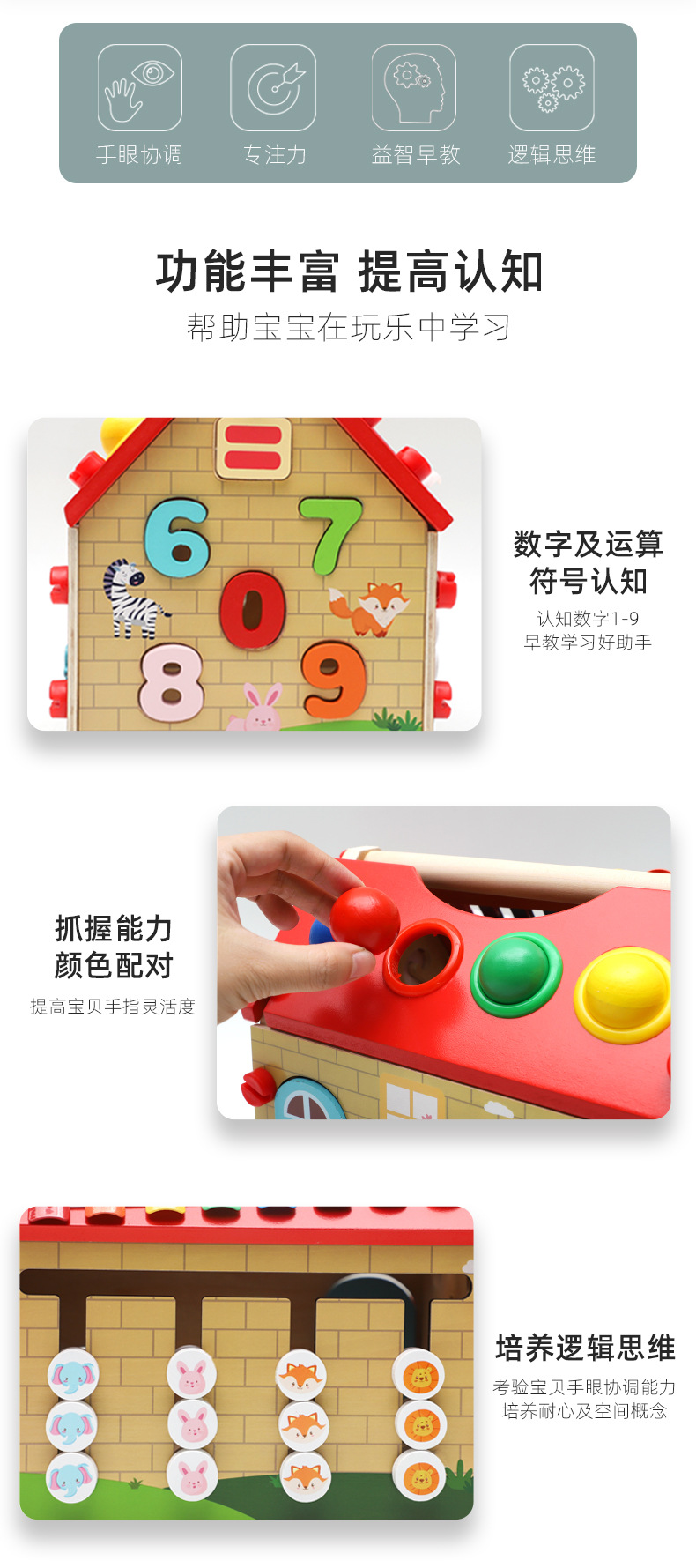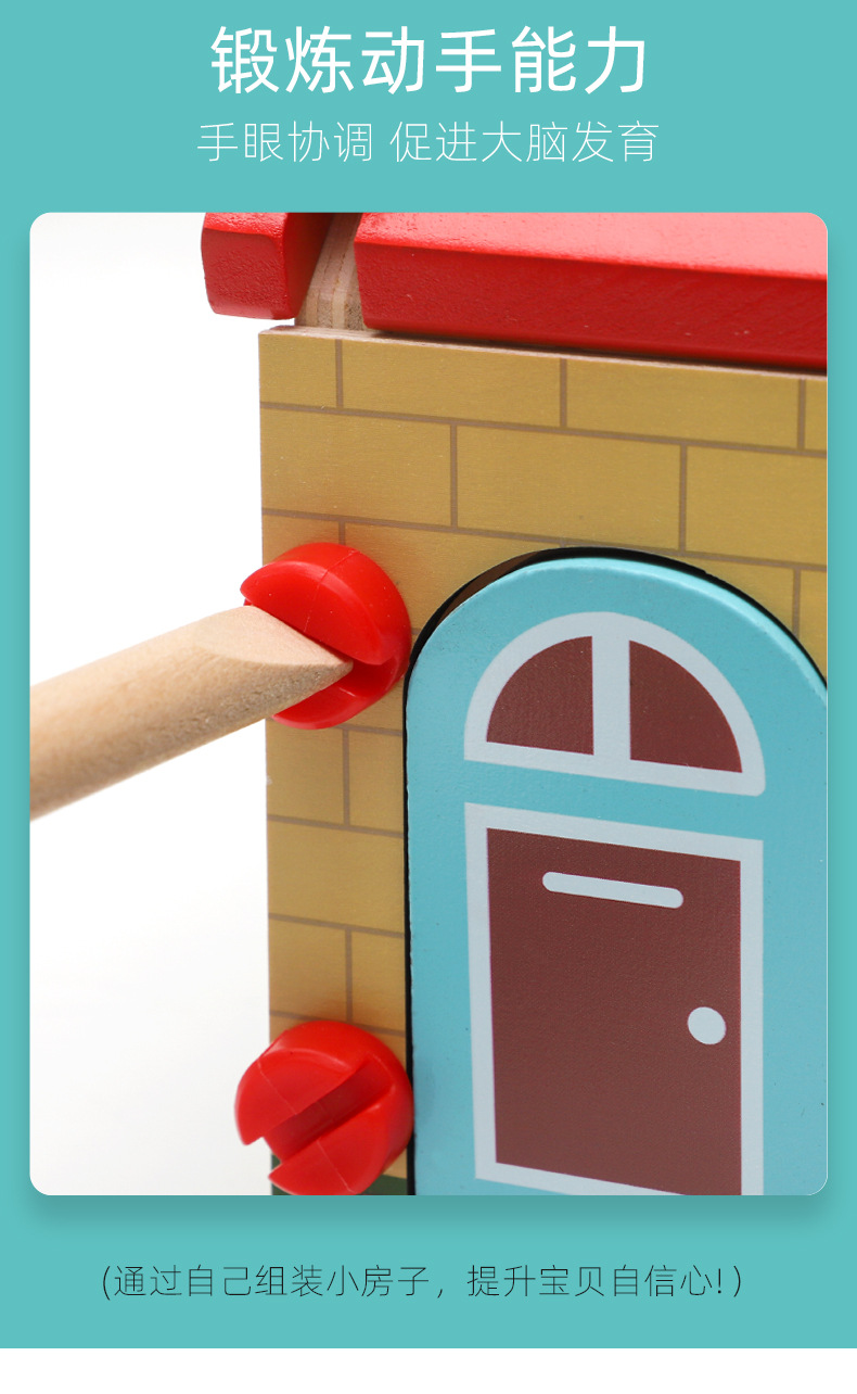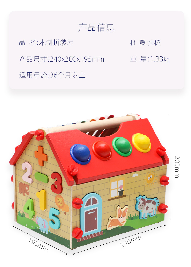 产品名称 :木制拼装屋 产品尺寸 :30.5*24*6cm 产品重量 1.34kg 产品地址 浙江云和 产品认证 cpc CE (正在做) 外箱尺寸44.5 *31.5*50.5 装箱数14 盒 毛/净重 18.8/19.8kg