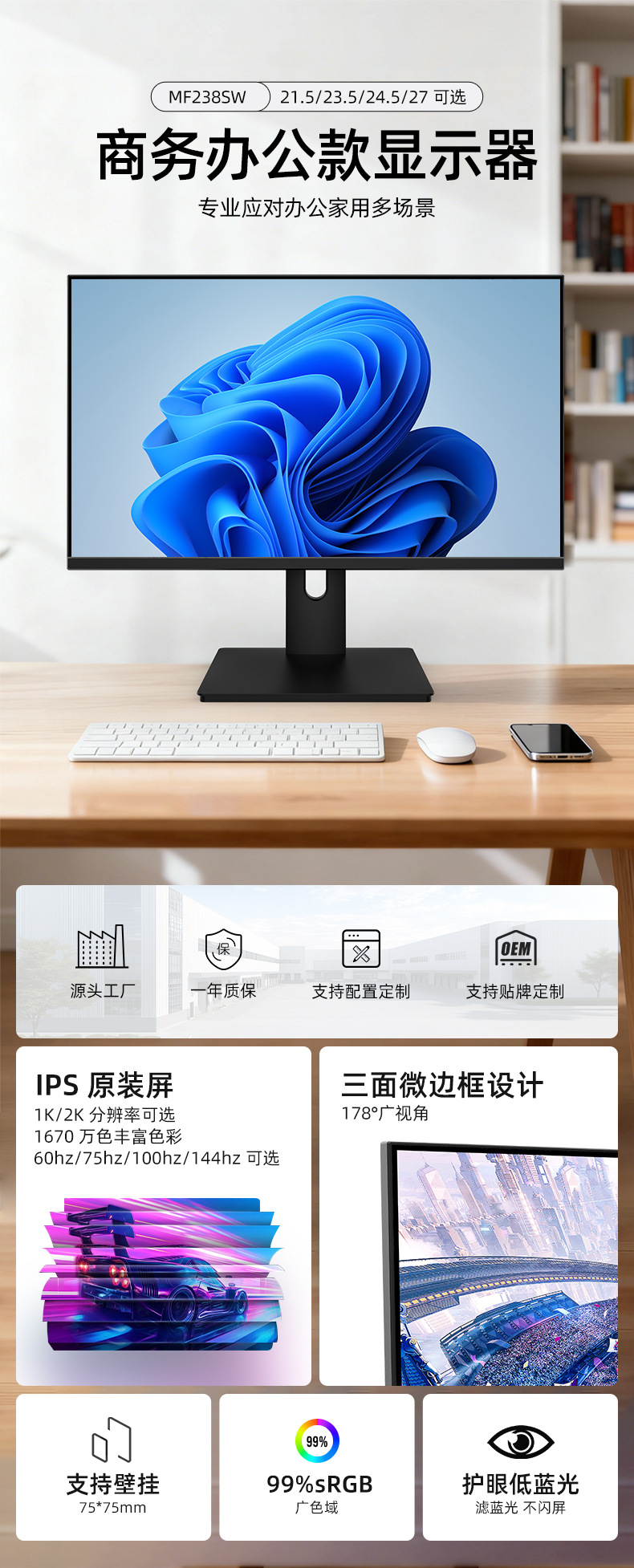 Компьютерный экран высокой четкости Maifan 23.8inch с плоским экраном IPS, универсальный коммерческий офисный экран, настольный монитор