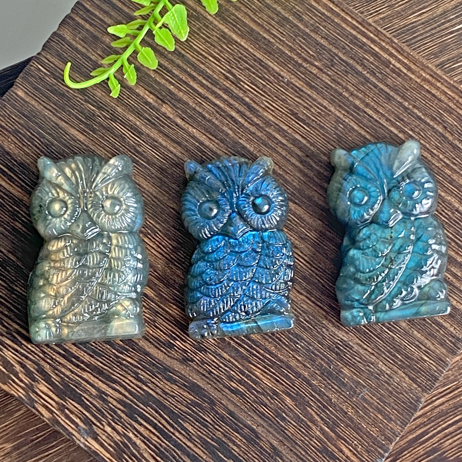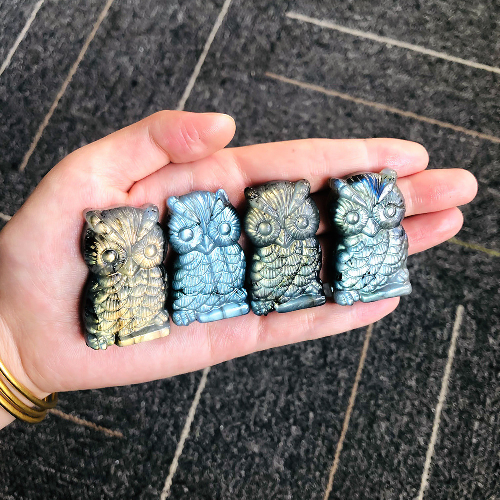 Натуральные резные фигурки сов из лабрадорита для изготовления ювелирных подвесок, рукоделия и минеральных украшений оптом и в розницу