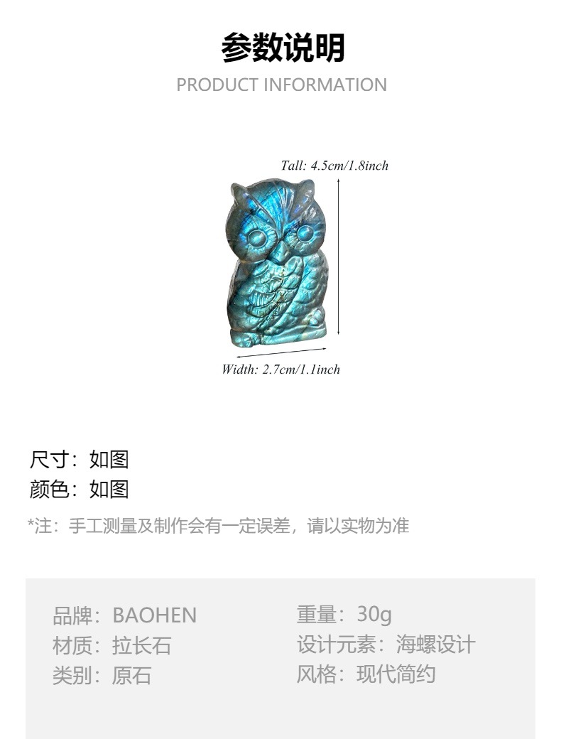【智慧战神·拉长石猫头鹰圆雕】🦉✨