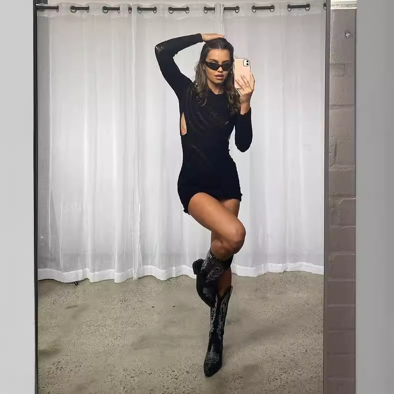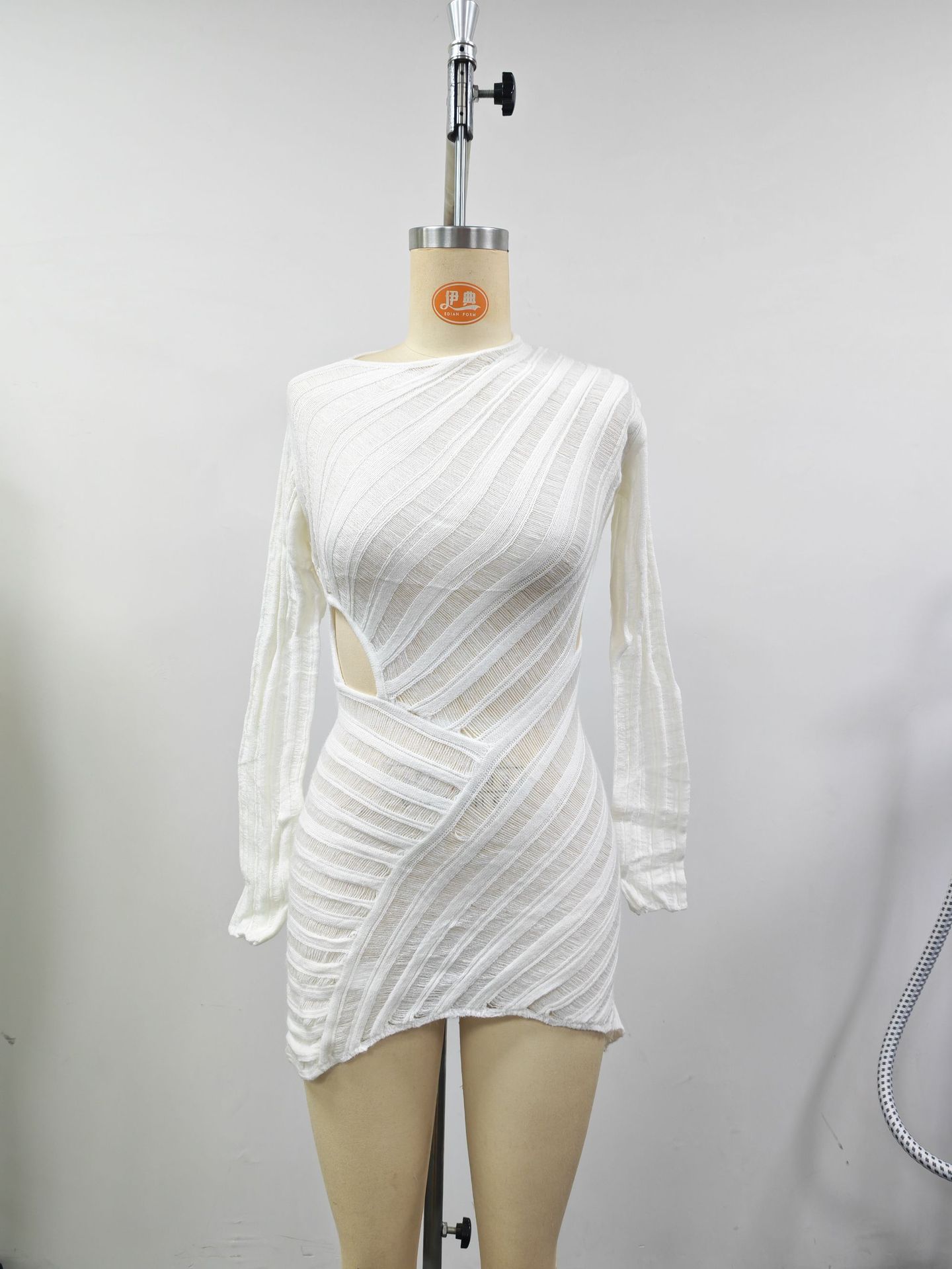 Европейские и американские сексуальные свитера трикотажные полые длинные платья