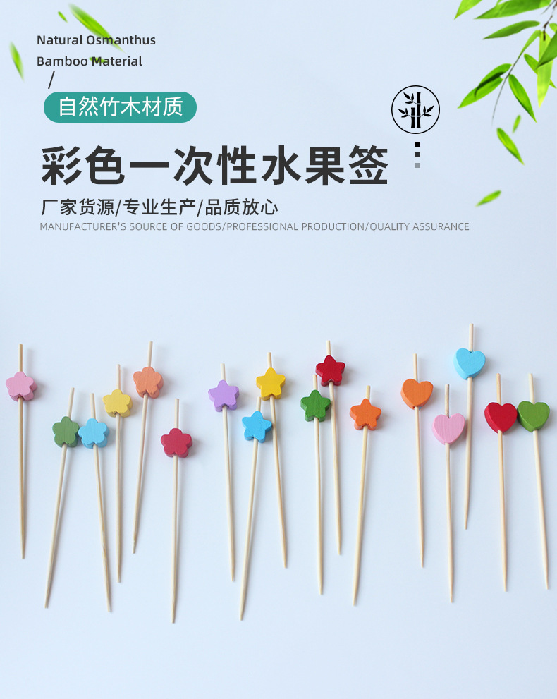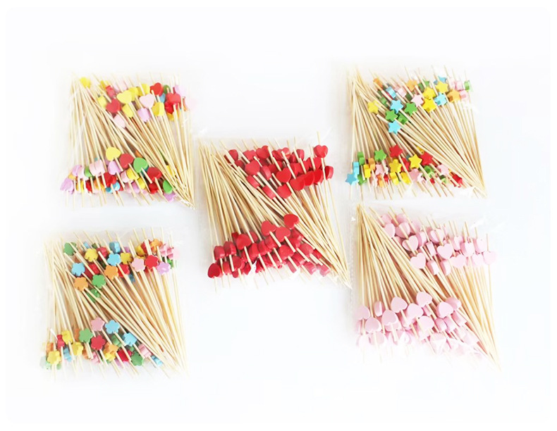Одноразовая фруктовая палочка красочная красная персиковая сердце цветок сливы пятиконечная звезда вилка для фруктов креативная декоративная бамбуковая палочка