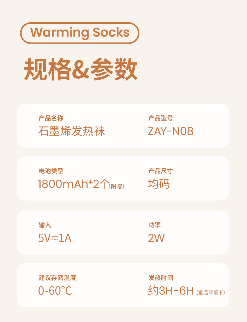 产品标配:发热袜一双,电源两个,充电线一条,说明书一份。