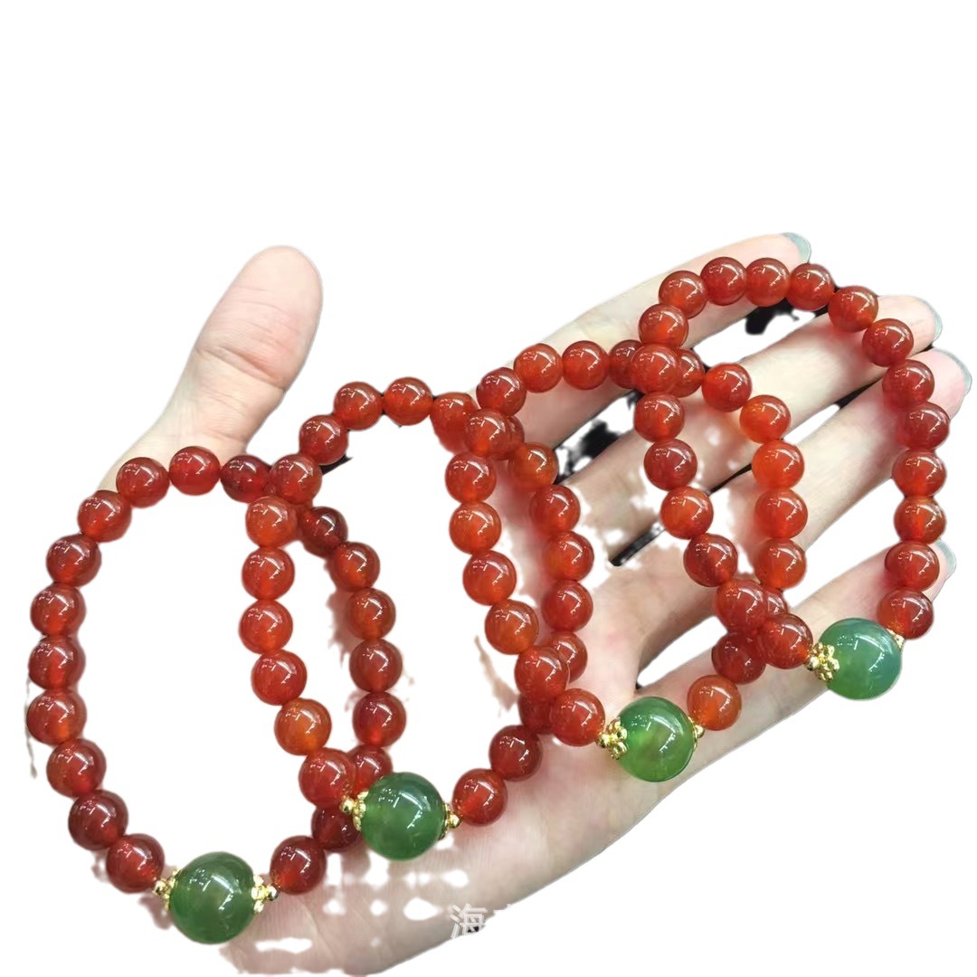 天然红色玛瑙手链南红手串搭配绿玛瑙单珠夏天时尚直播福利引流款批发量越大价格越低,可供直播间长期合作,欢迎来电私聊