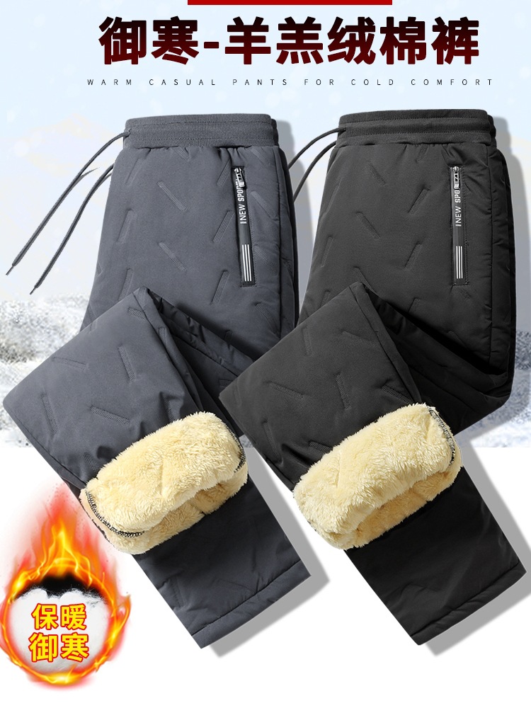 Брюки на пуху ягненка, Мужская зимняя верхняя одежда, утепленные повседневные брюки на флисовой подкладке, мужские зимние ветрозащитные теплые брюки для снега
