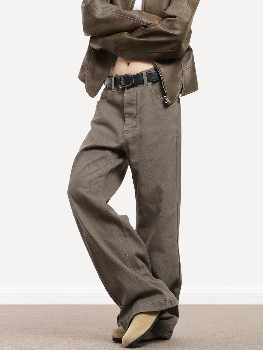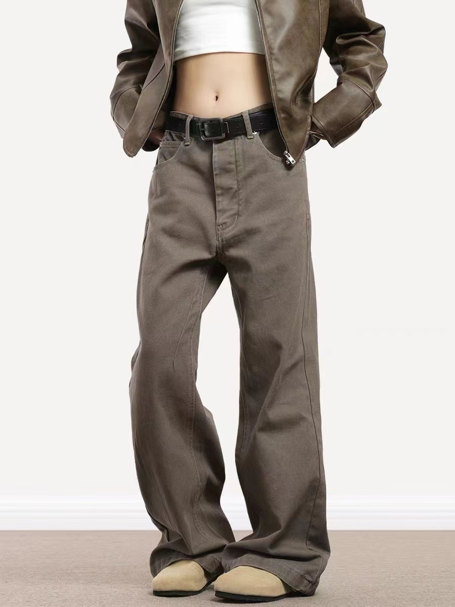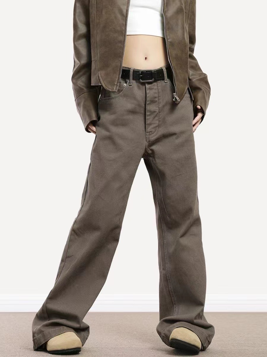 Новые винтажные потертые джинсы Maillard, мужские и женские, свободные грязные брюки в американском стиле, коричневые универсальные прямые брюки, модные