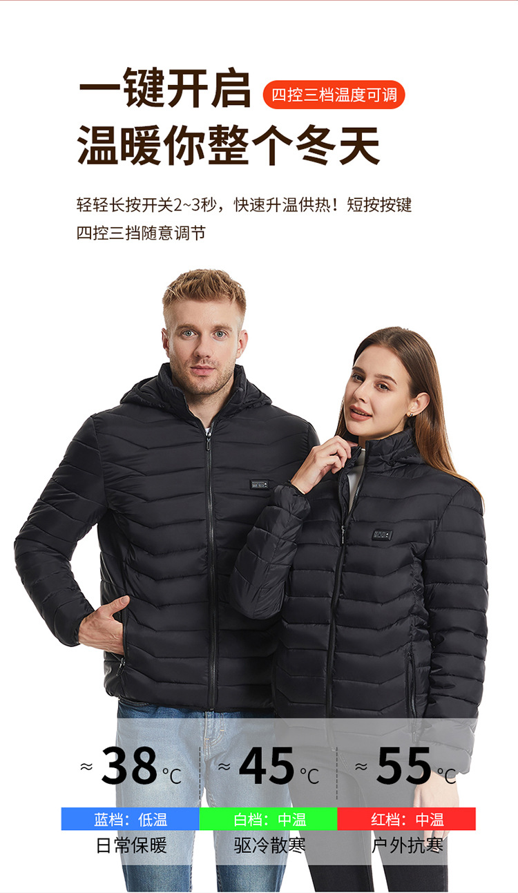 Утепленная одежда с подогревом для мужчин и женщин, умная куртка с подогревом, поддержание постоянной температуры по всему телу, четыре режима, двадцать один зон, утолщенная и теплая.
