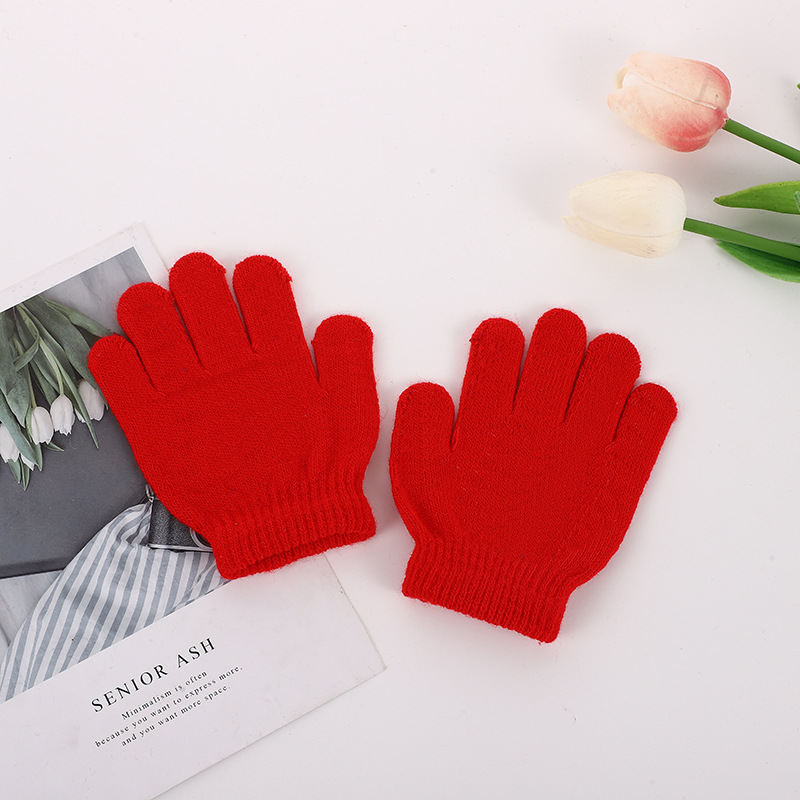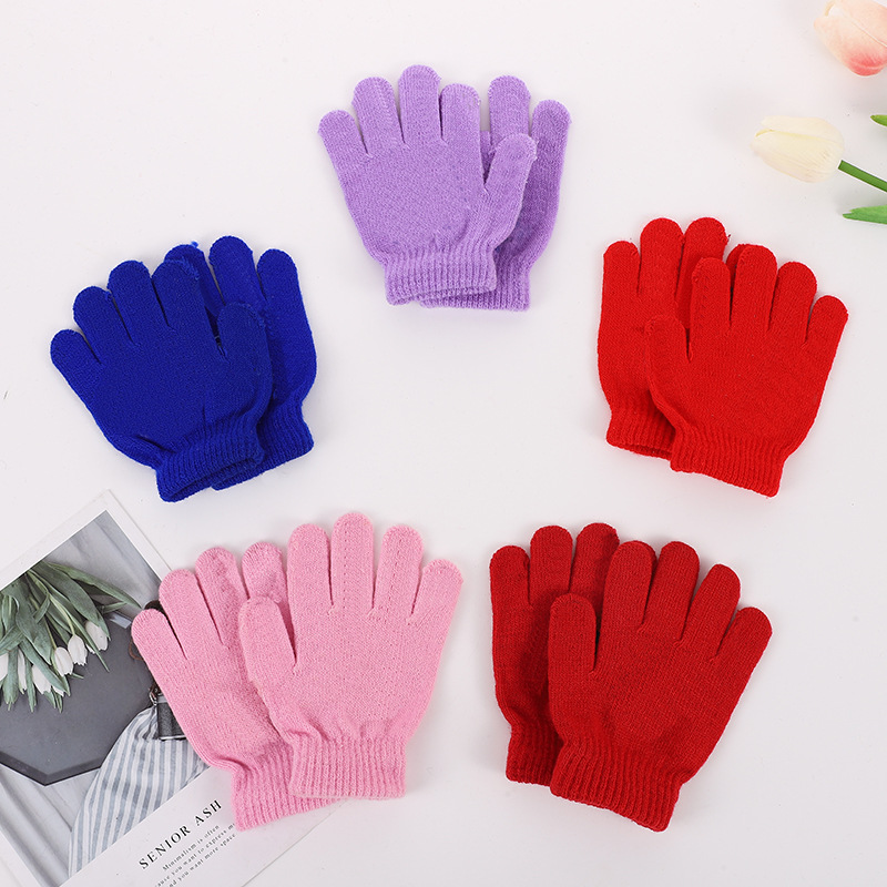 Заводская прямая продажа зимние теплые детские перчатки сплошной цвет трикотаж для мальчиков девочек лыжные перчатки для детей