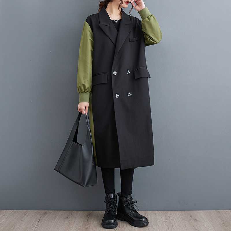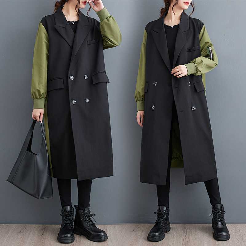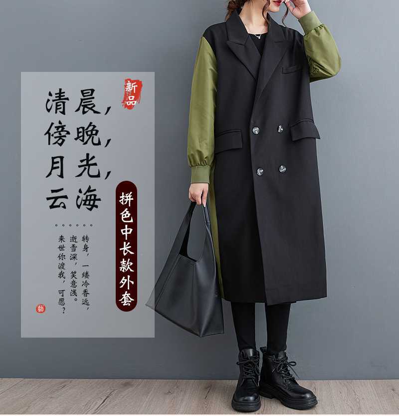 Настоящий выстрел 2023 осенне-зимний темперамент Повседневный Цвет соответствующий двухслойный костюм с воротником кардиган Тренч модное тонкое пальто больших размеров
