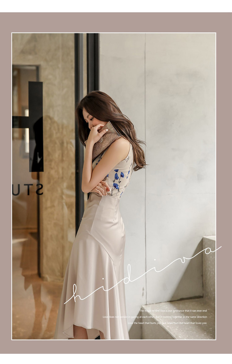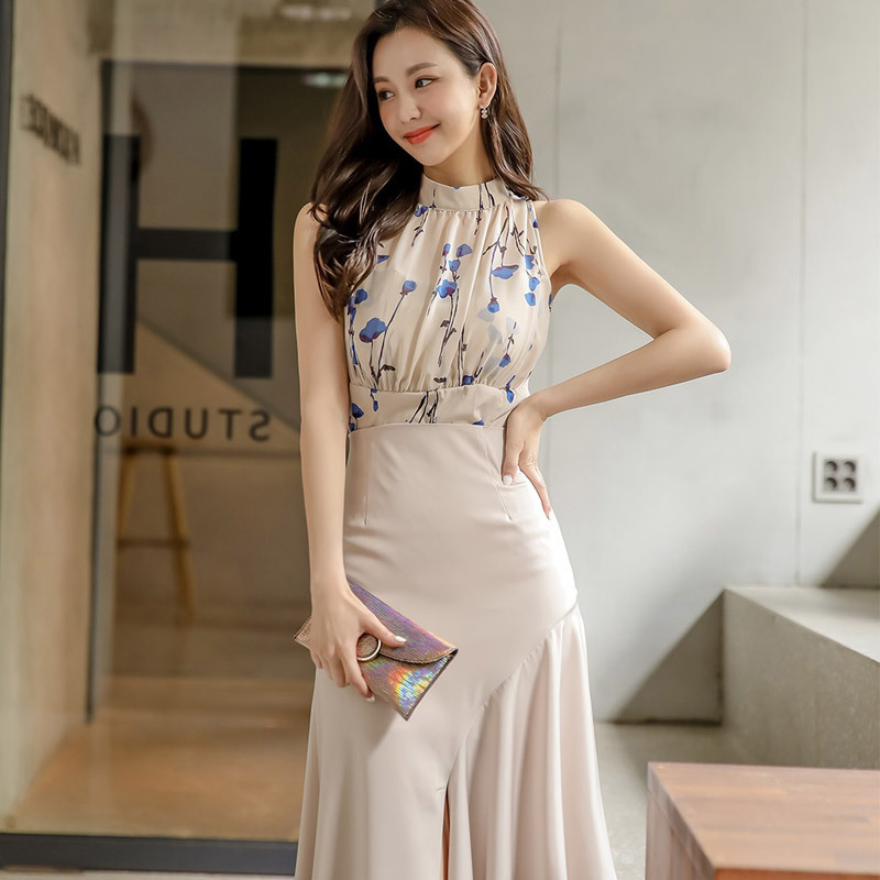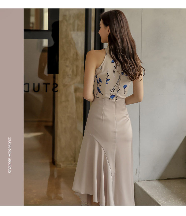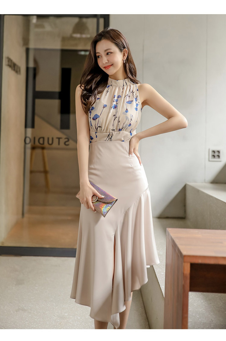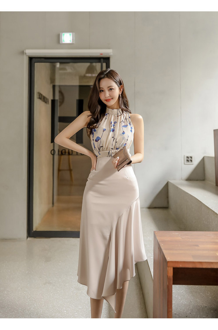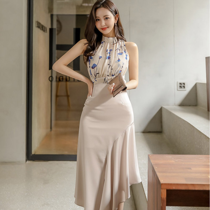 Женское платье для внешней торговли, новое летнее платье из двух частей, Приталенный топ с принтом, юбка с оборками и талией, 2021 в Корейском стиле