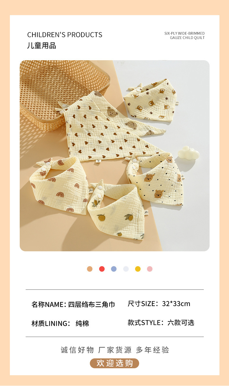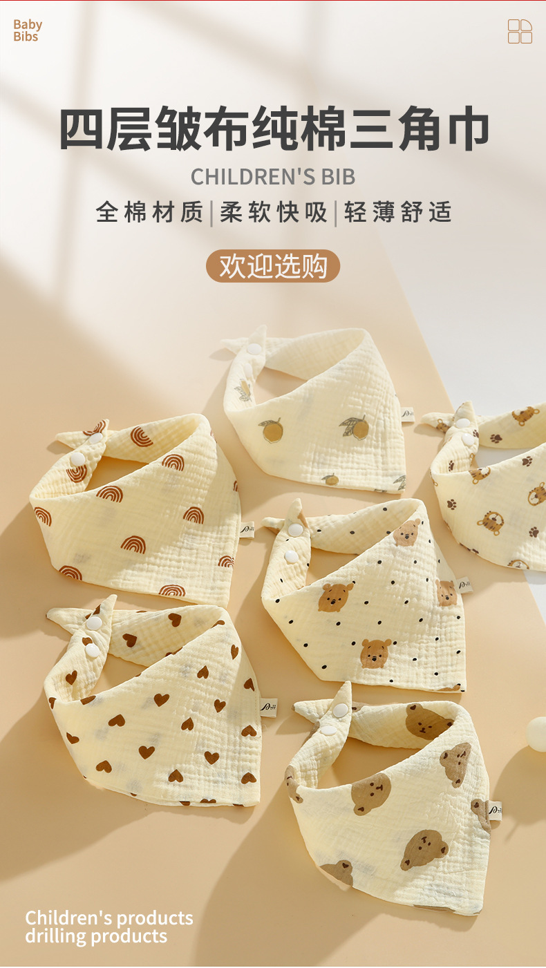 Детское полотенце для вертел, хлопковое четырехслойное Креповое треугольное полотенце, многофункциональное детское Марлевое полотенце, нагрудник